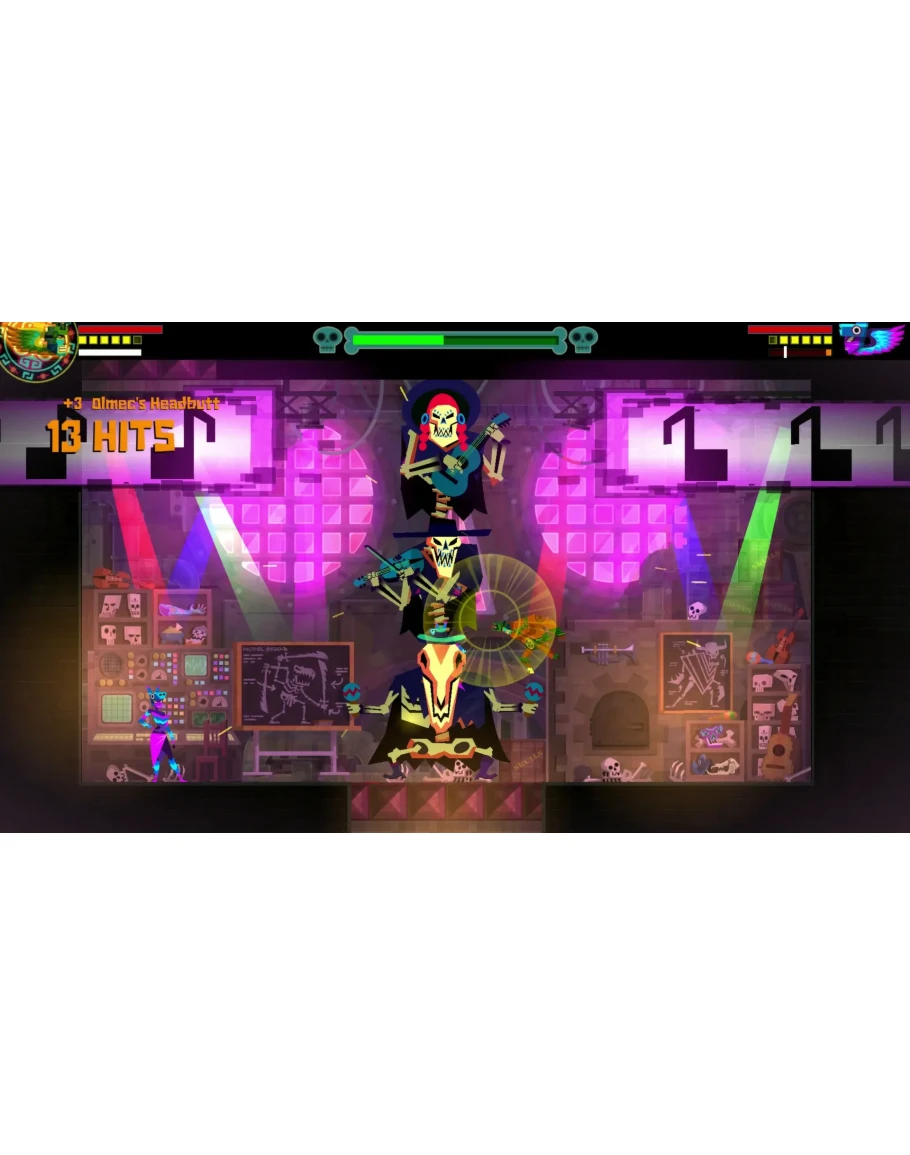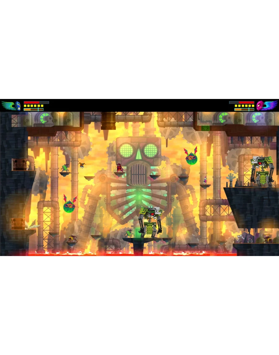 Guacamelee! STCE - платформенный экшн в духе Metroidvania в волшебном мире мексиканского фольклора. В нем есть драки, параллельные измерения и кооперация на общем экране. Издание Super Turbo Championship включает дополнительные способности, новые уровни и улучшенную графику. Также имеются куры.