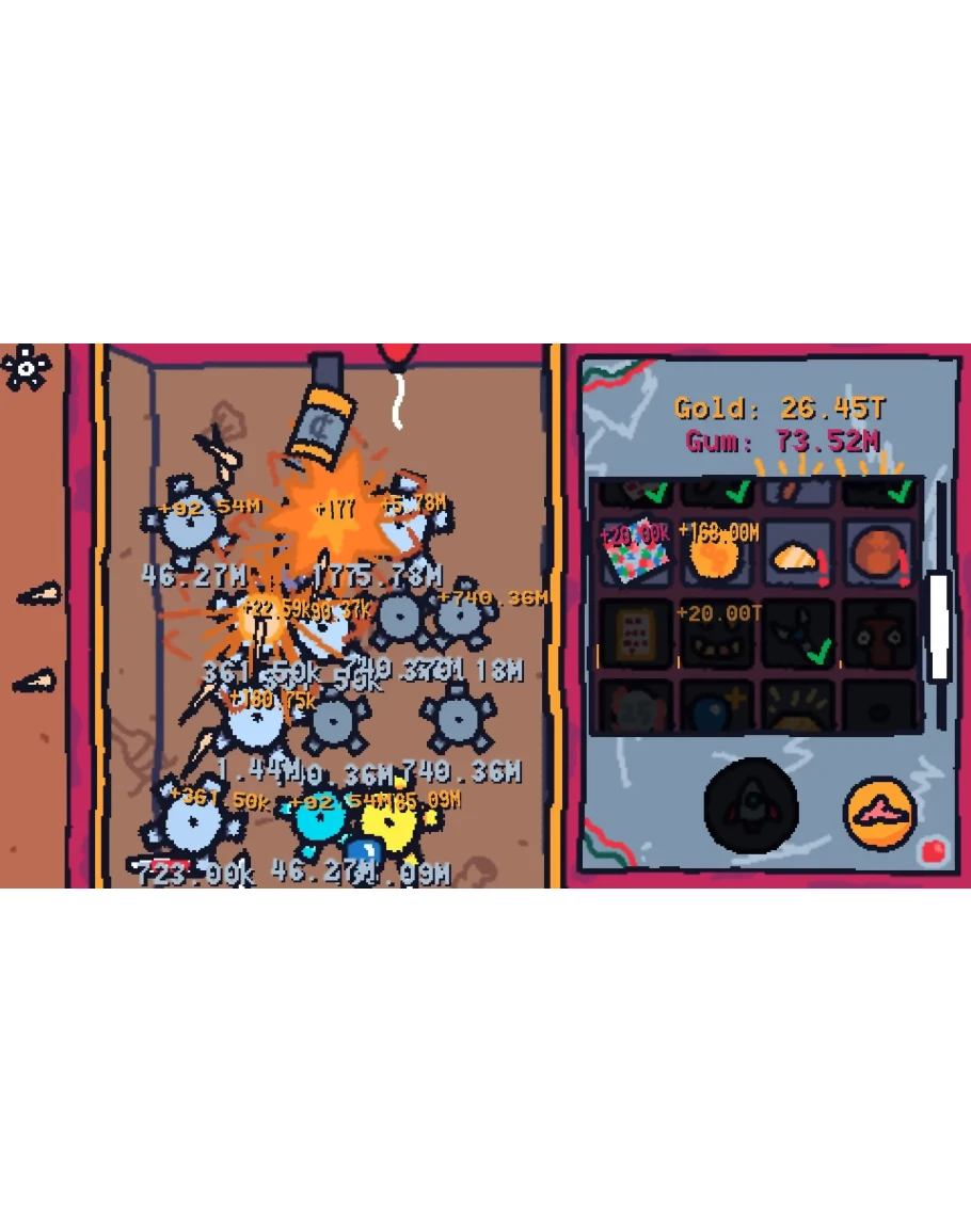 Инкрементальная игра в стиле Плинко. Стреляйте жевательными шариками по шестерёнкам и покупайте улучшения, чтобы увеличивать числа, пока не сломаете игру! Короткая, приятная, расслабляющая и затягивающая!