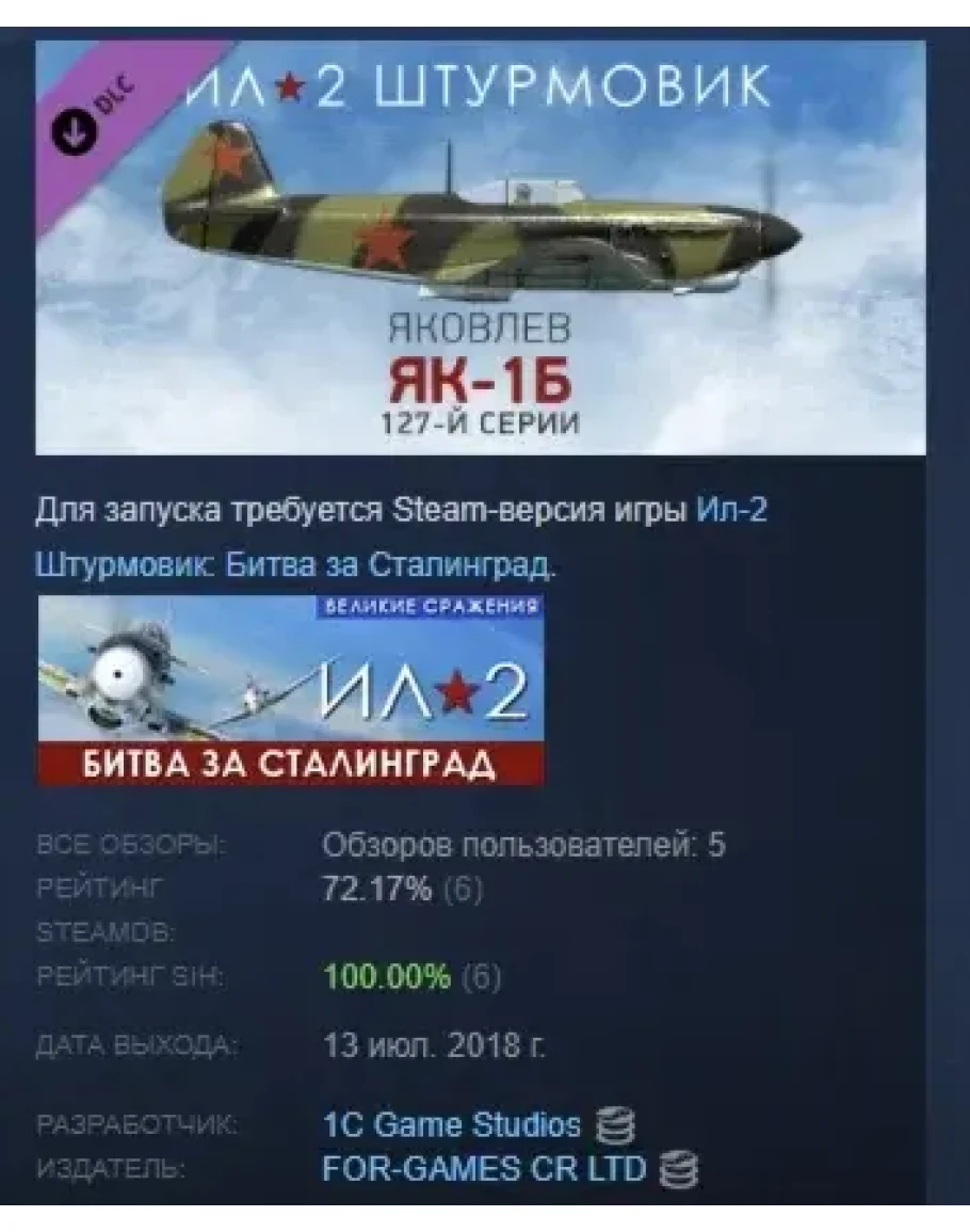Ил-2 Штурмовик: Як-1б (Як-1 127-й серии) DLC STEAM РФ