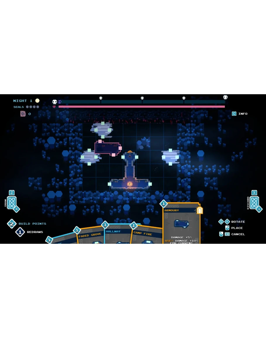 Into the Restless Ruins — это карточный роуглайк. Используйте колоду карт, представляющих комнаты и коридоры, чтобы расширять лабиринт руин. Пробивайте путь с помощью автобоя, собирая как можно больше Глимура с проклятых обитателей, пока тьма не поглотит свет вашего факела.