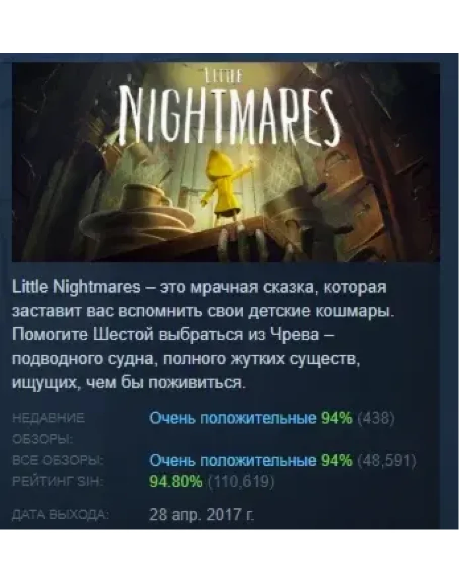 Little Nightmares АВТОДОСТАВКА STEAM РОССИЯ