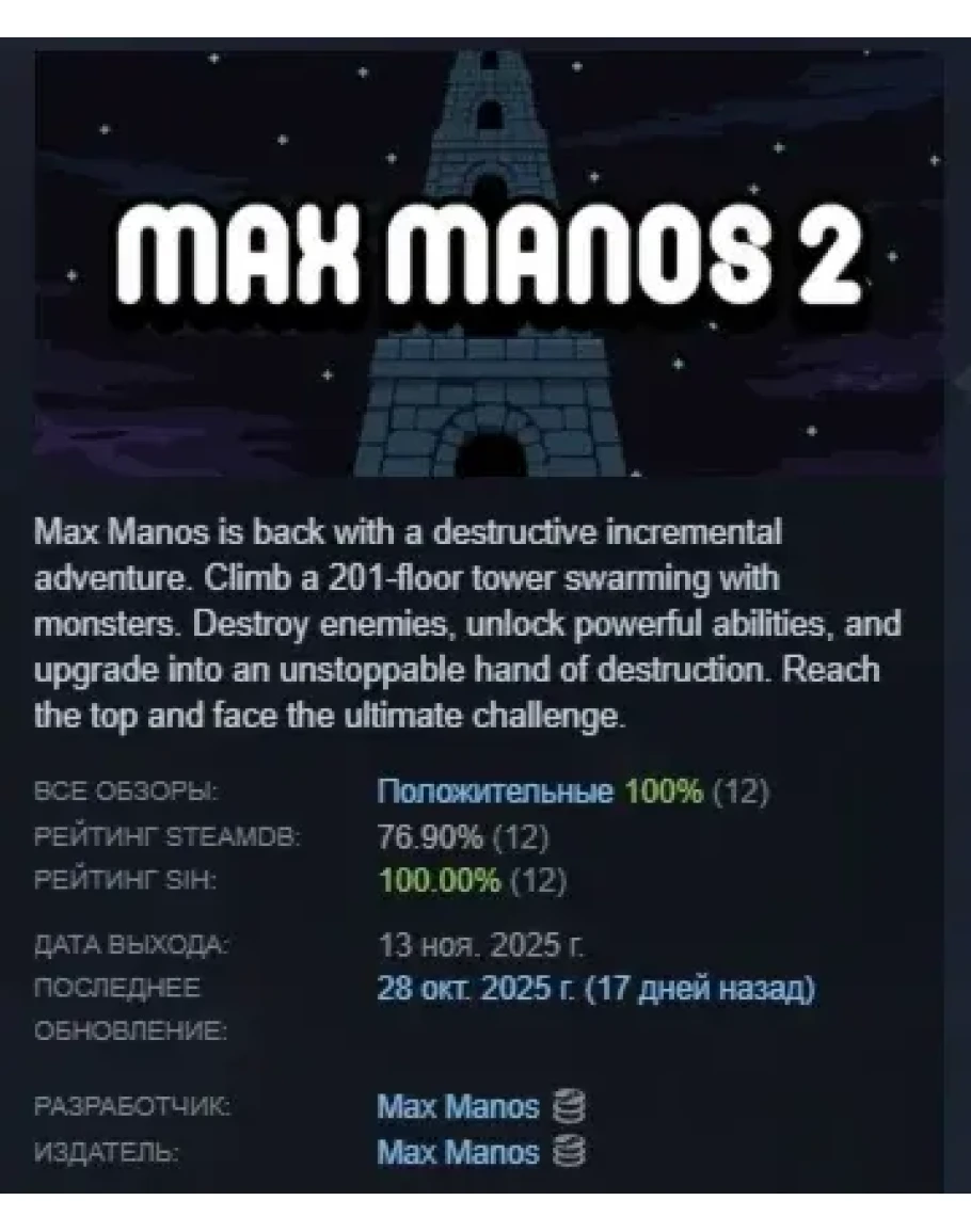 Max Manos 2 АВТОДОСТАВКА STEAM РОССИЯ