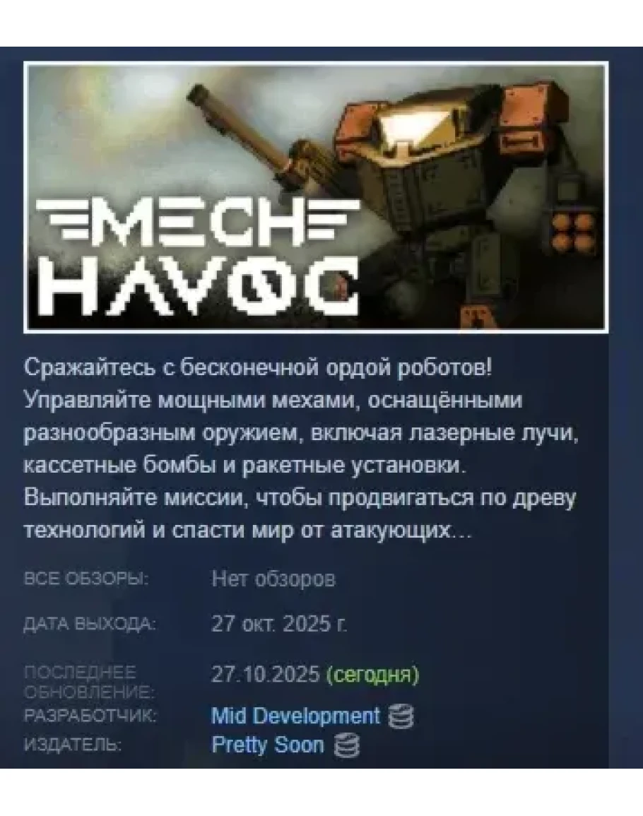 Mech Havoc АВТОДОСТАВКА STEAM РОССИЯ