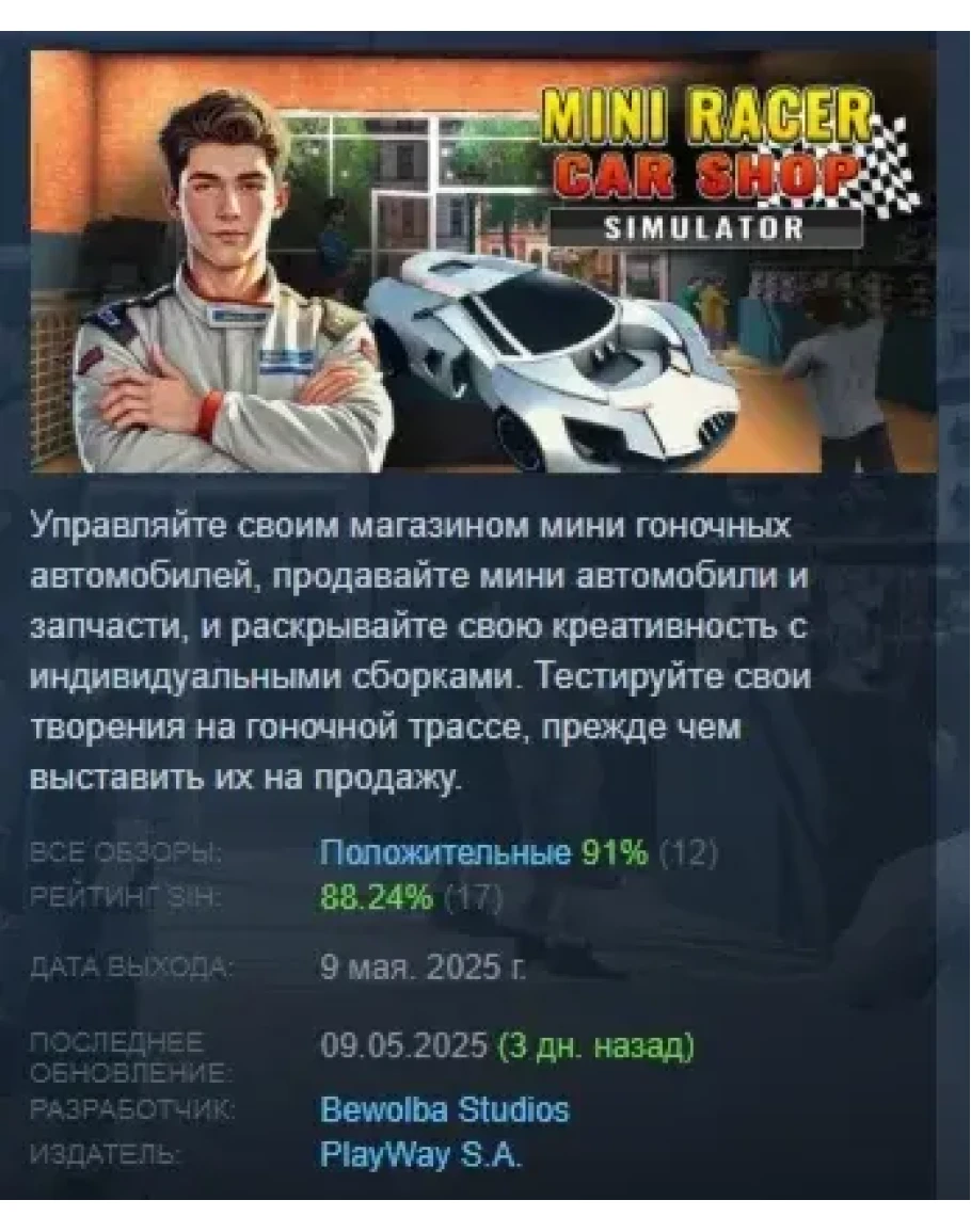 https://store.steampowered.com/app/3294630/Mini_Racer_Car_Shop_Simulator/