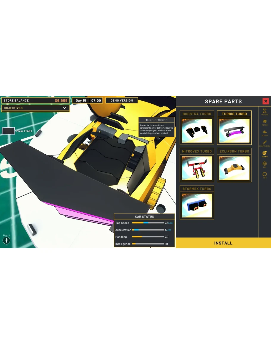 Управляйте своим магазином мини гоночных автомобилей, продавайте мини автомобили и запчасти, и раскрывайте свою креативность с индивидуальными сборками. Тестируйте свои творения на гоночной трассе, прежде чем выставить их на продажу.