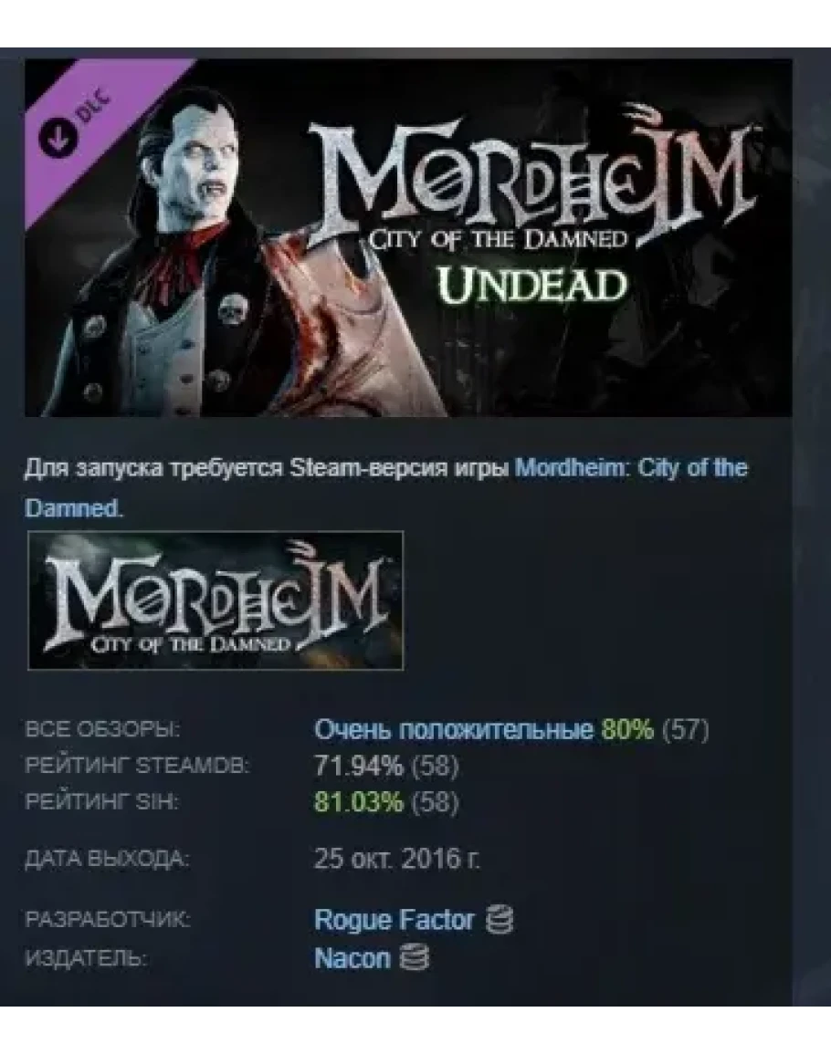 Mordheim: City of the Damned - Undead DLC STEAM РОССИЯ