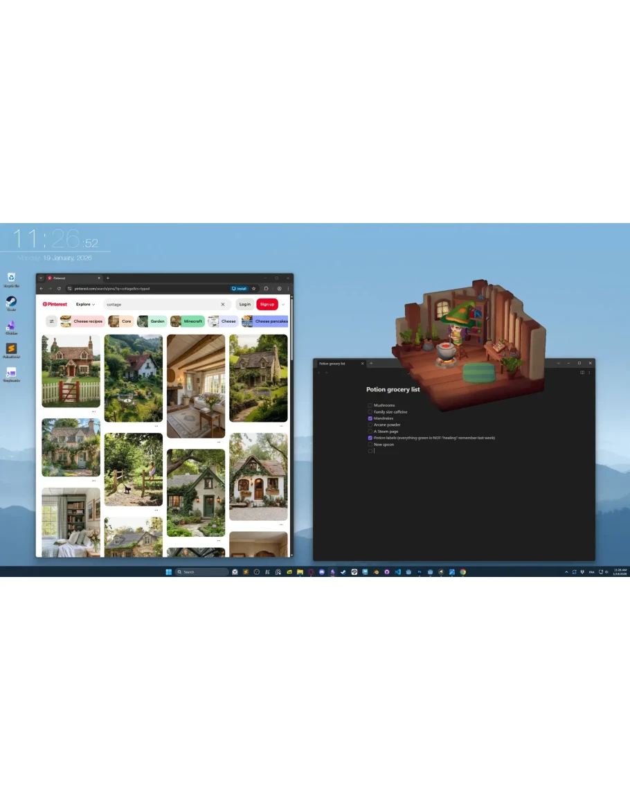 Маленькая ведьма-компаньонка, которая варит зелья где угодно на вашем рабочем столе. Наблюдайте за её работой и продажей зелий, одевайте её в новые наряды и украшайте её крошечную мастерскую. Сосредоточьтесь, используя инструменты повышения продуктивности, такие как контрольные списки и таймеры Помодоро.