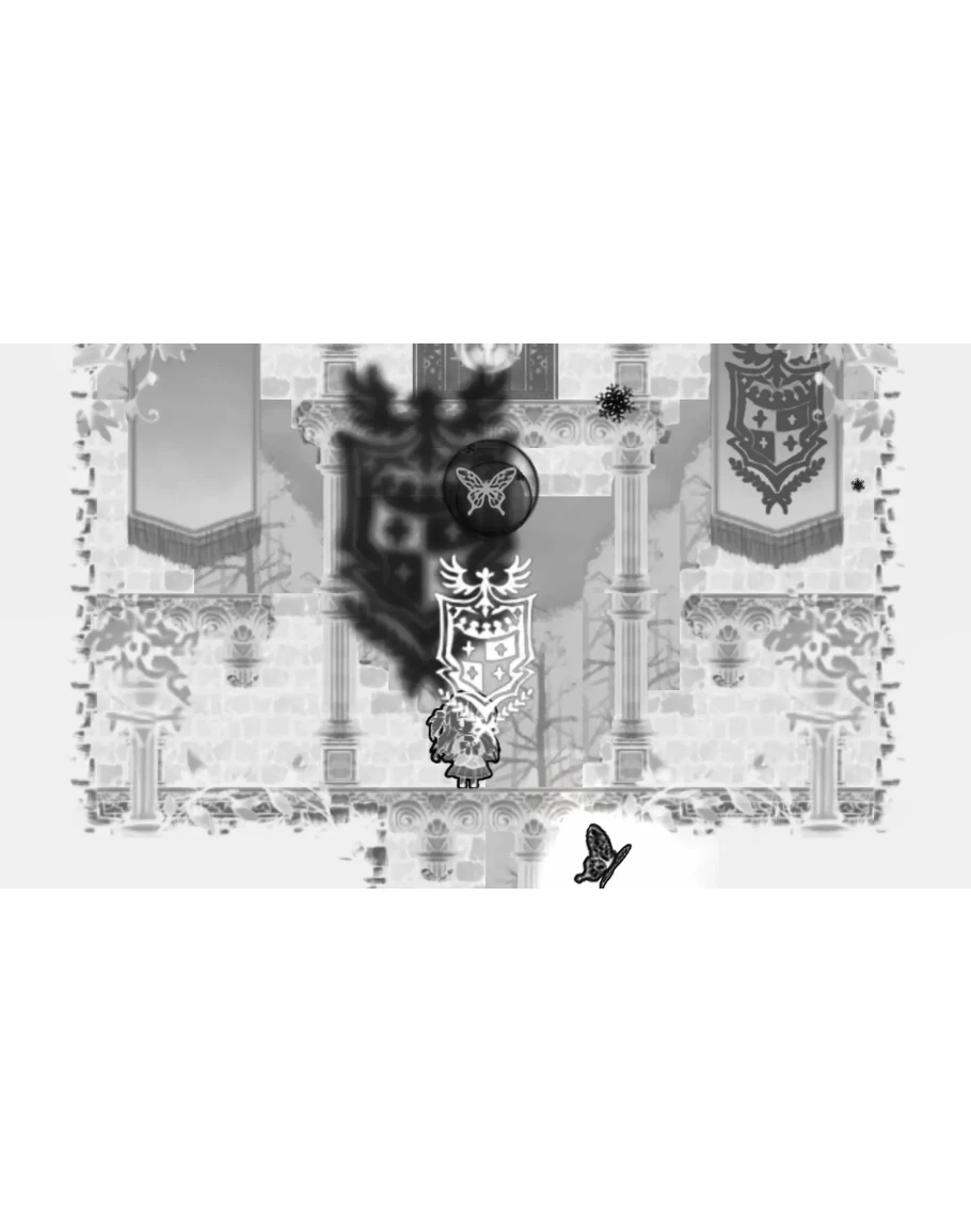 Внутри башни сверкает бабочка.