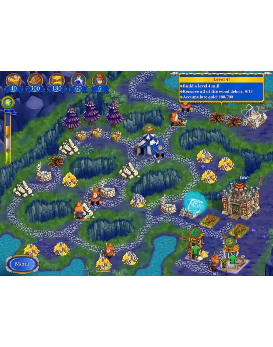 Помогите Джону и Мэри вернуться в 21 век из времен короля Артура! Доберитесь до замка Черного Рыцаря, попутно восстанавливая разрушенные деревни! Опасности поджидают на каждом шагу, но ваша храбрость и острый ум помогут одолеть любые препятствия!