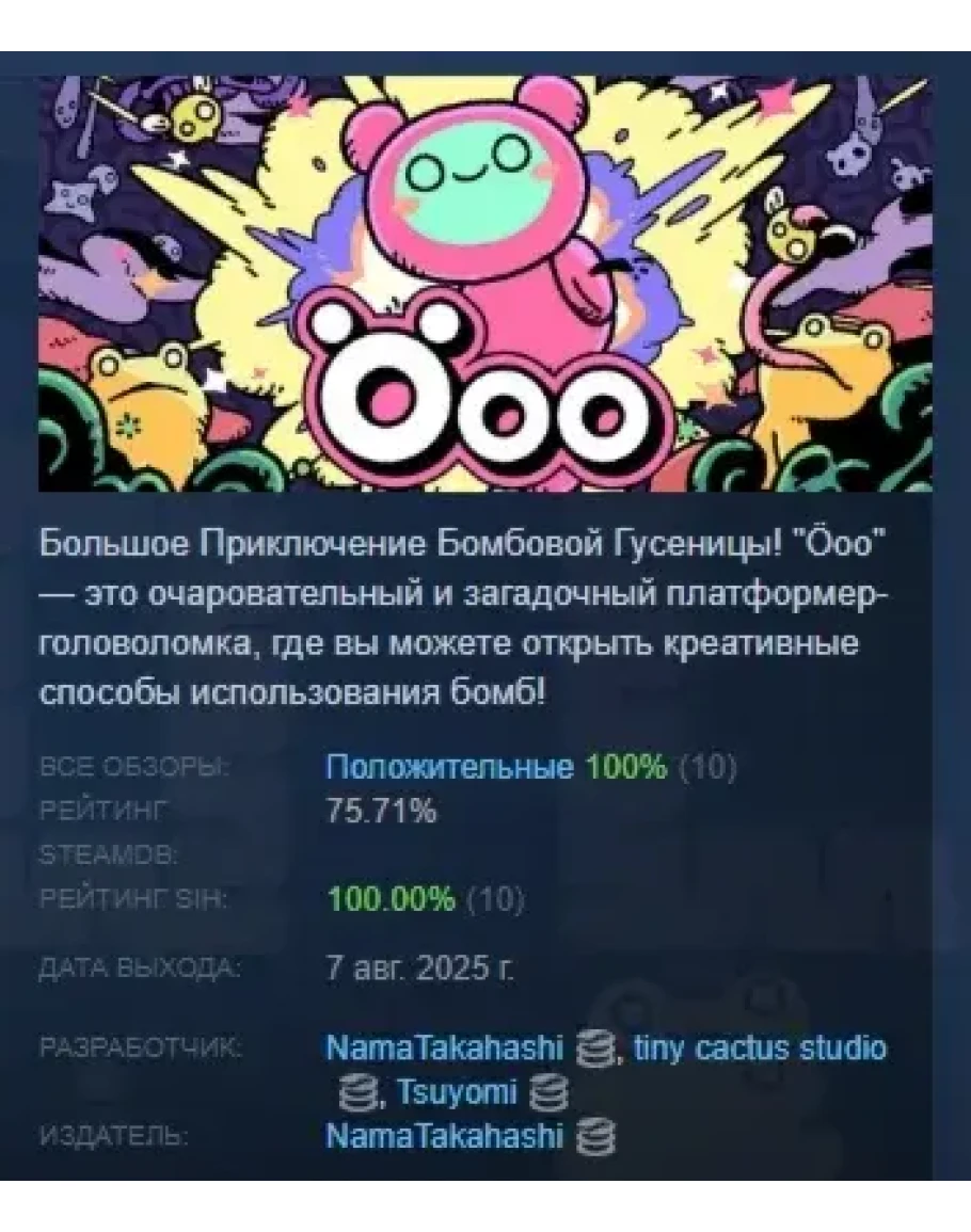 Большое Приключение Бомбовой Гусеницы! "Öoo" — это очаровательный и загадочный платформер-головоломка, где вы можете открыть креативные способы использования бомб!