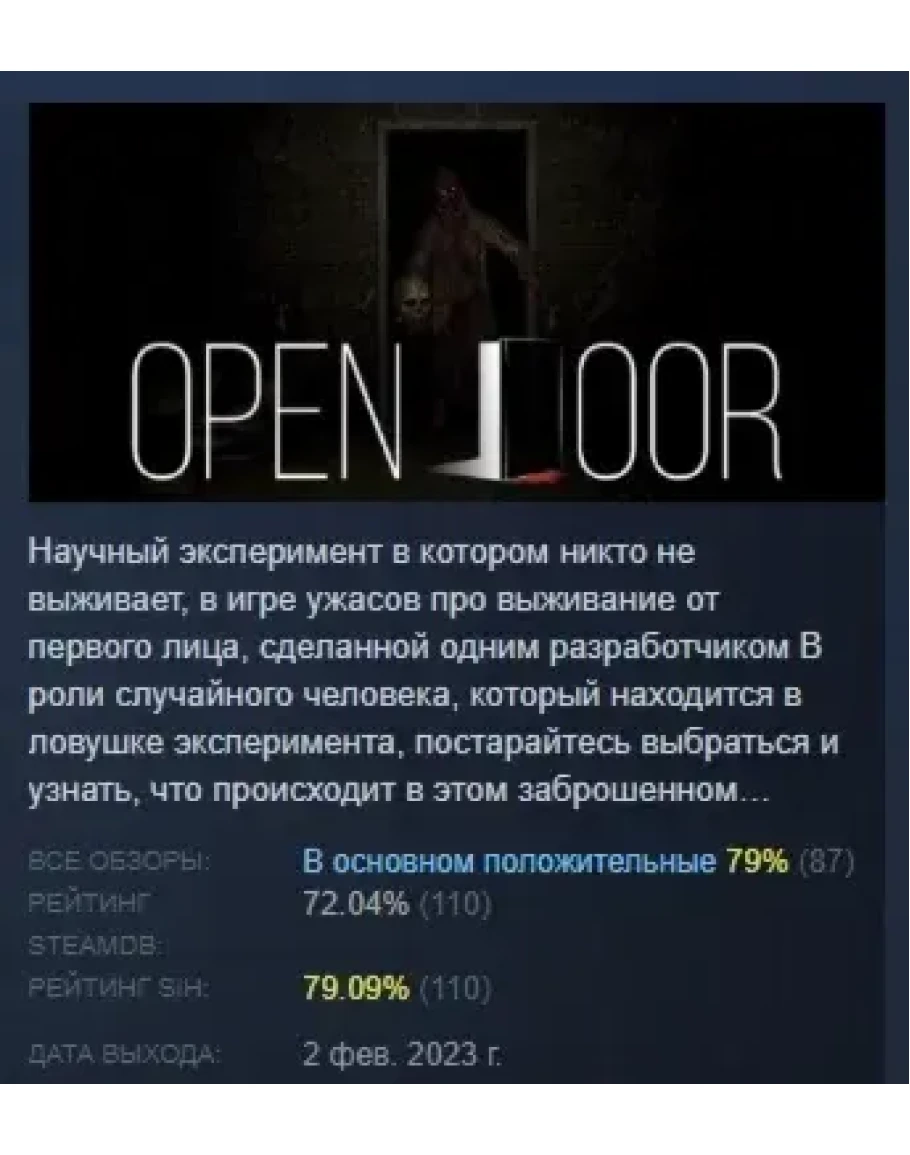 OPEN DOOR АВТОДОСТАВКА STEAM GIFT РОССИЯ