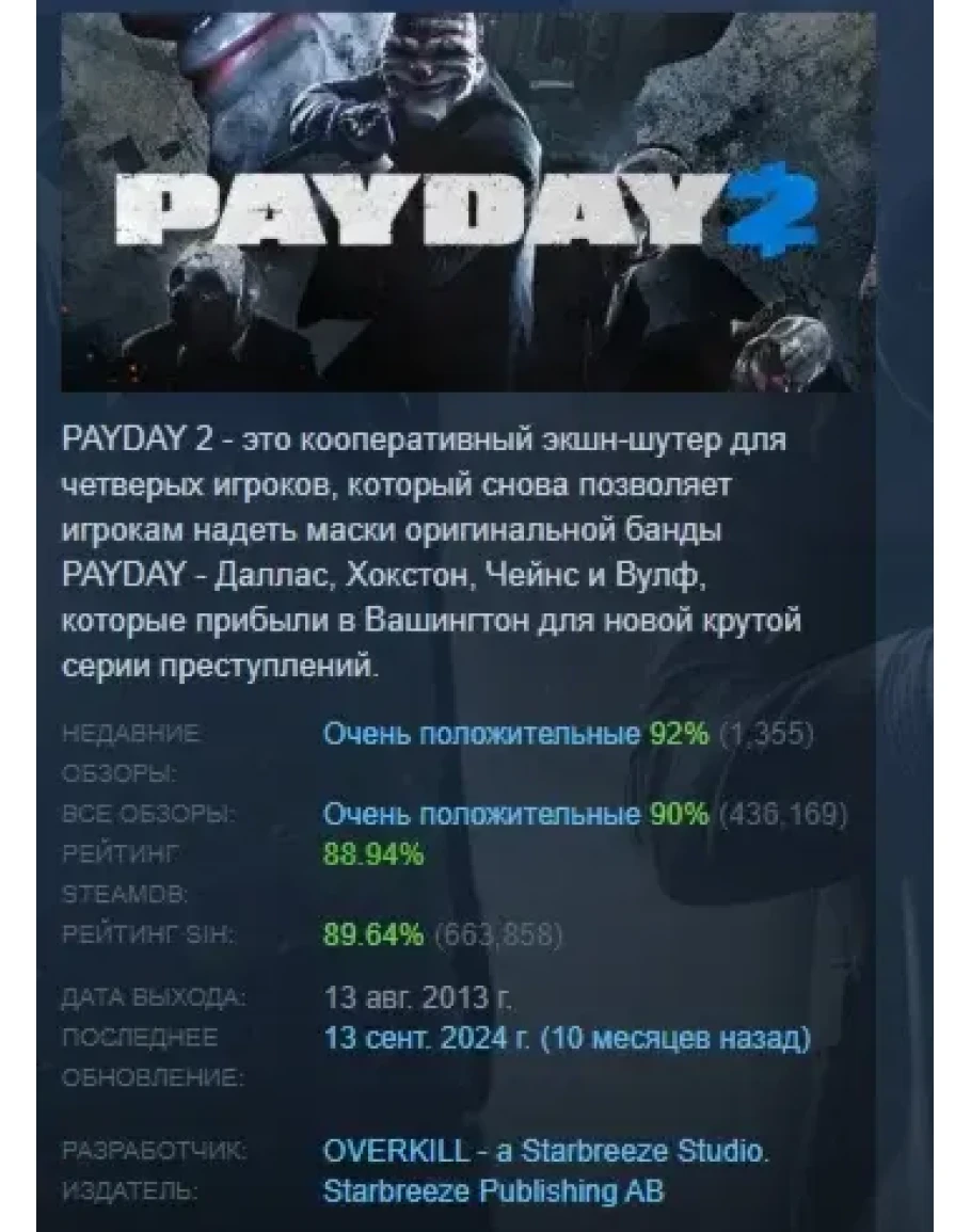 PAYDAY 2 АВТОДОСТАВКА STEAM РОССИЯ