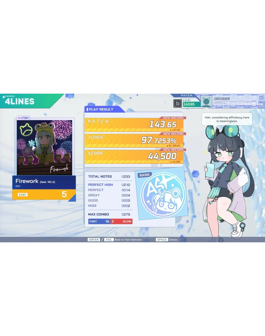 A new rhythm game featuring innovative characters inspired by databases! Join the research of PLATiNA :: LAB to uncover the secrets of the locked data world as a special 'Decoder' with unique abilities.