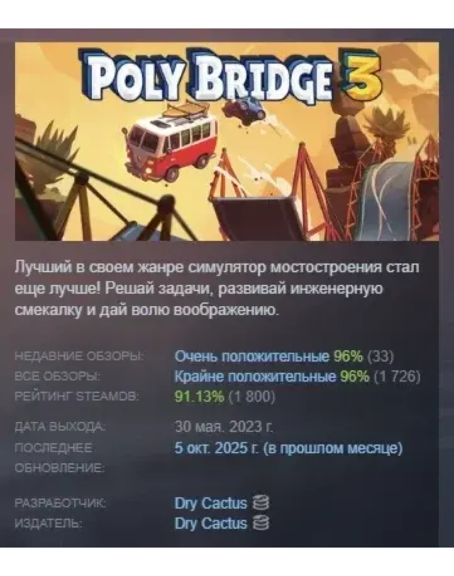 Poly Bridge 3 АВТОДОСТАВКА STEAM GIFT РОССИЯ