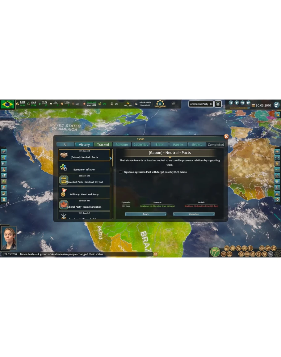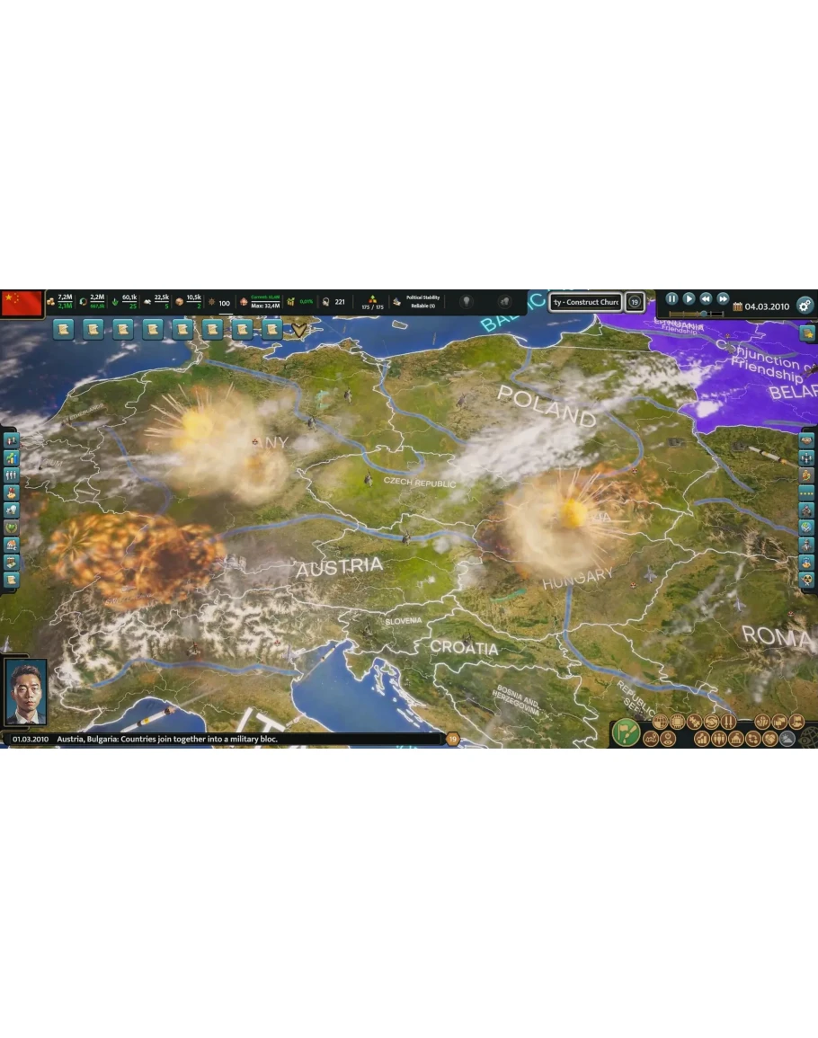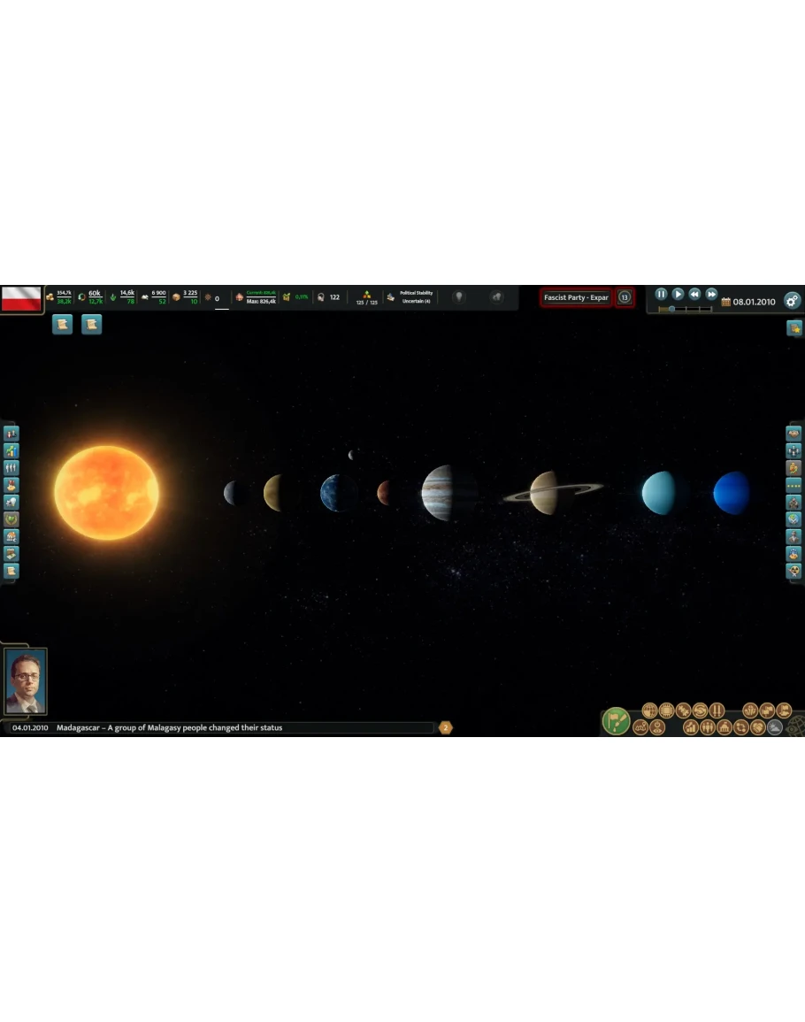 Демонстрируйте свой политический гений в большой игре: выберите любую современную страну, утвердите ее правительство и погрузитесь в хитросплетения внешней и внутренней политики. Вас ждет славное будущее, ведь предметом ваших амбиций является даже не Земля, а вся Солнечная система!