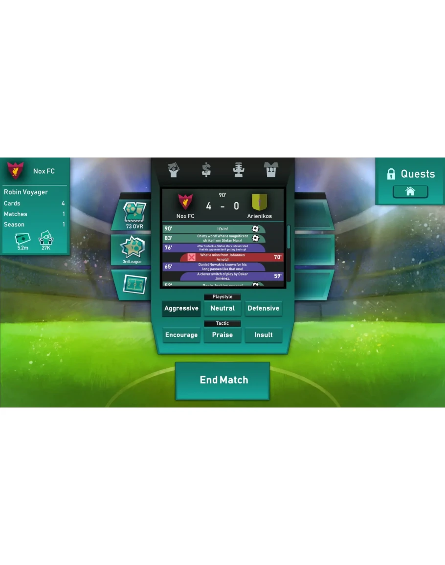 Стань владельцем своего футбольного клуба! Принимай стратегические решения и поднимайся с любительской лиги до первой, принимая сложные решения, чтобы привести клуб в порядок.