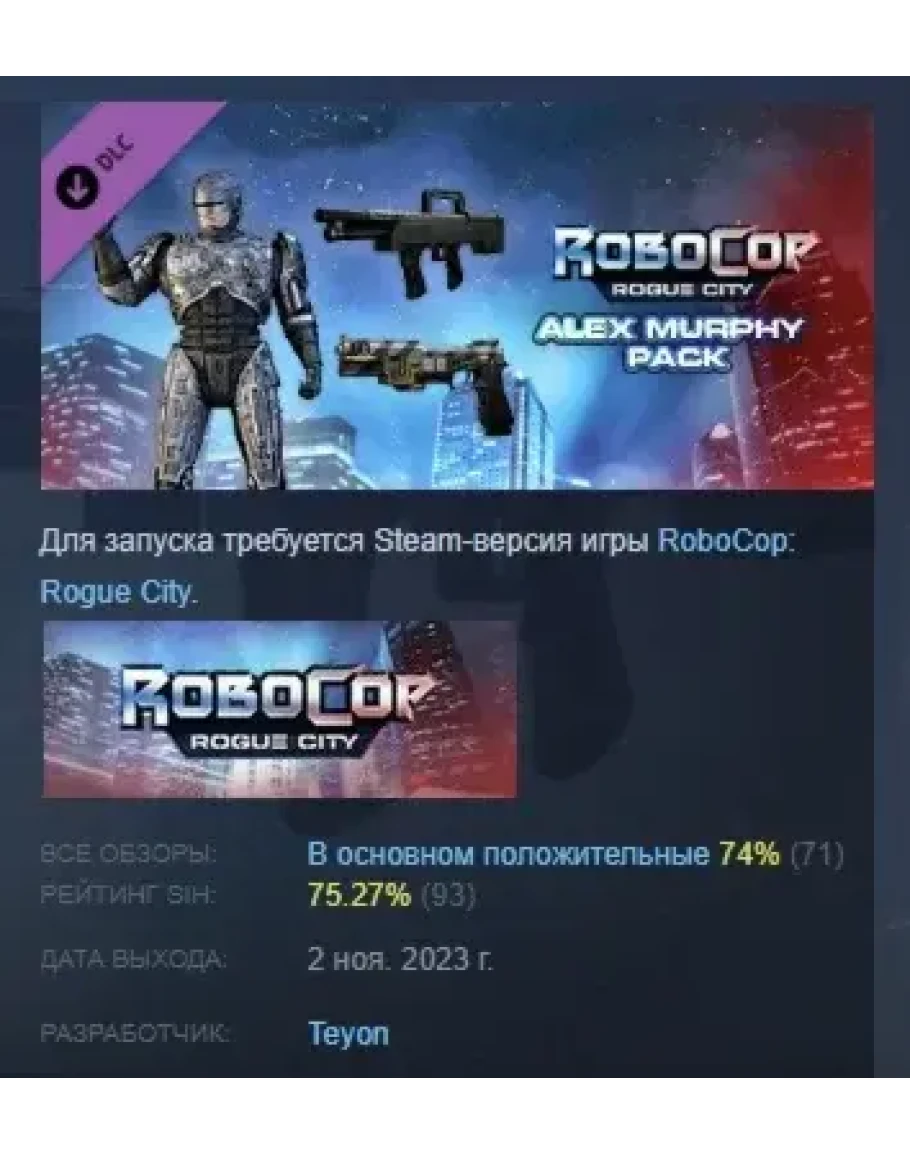 RoboCop: Rogue City Alex Murphy Pack DLC STEAM РОССИЯ