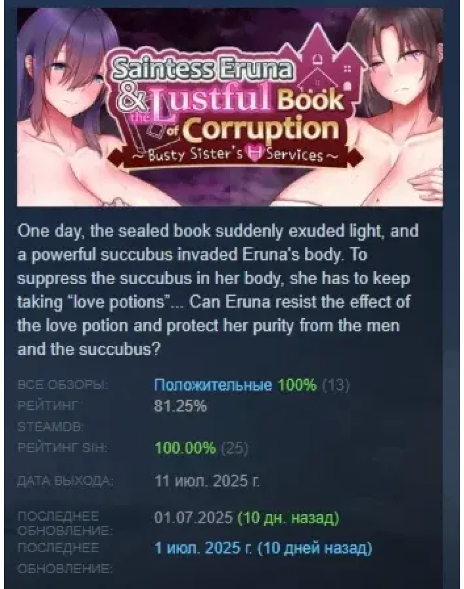 https://store.steampowered.com/app/3141900/Saintess_Eruna_and_the_Lustful_Book_of_Corruption_Busty_Sisters_H_Services/