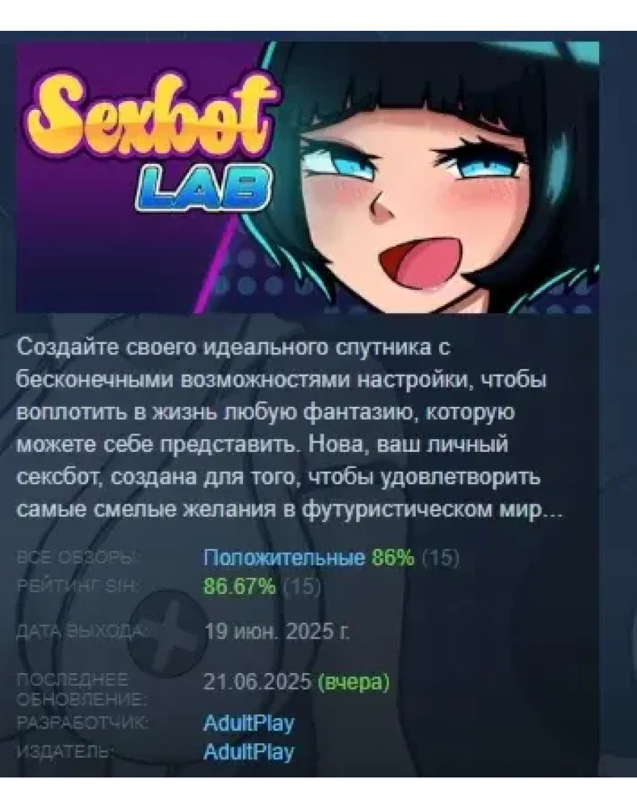 Sexbot Lab АВТОДОСТАВКА STEAM РОССИЯ