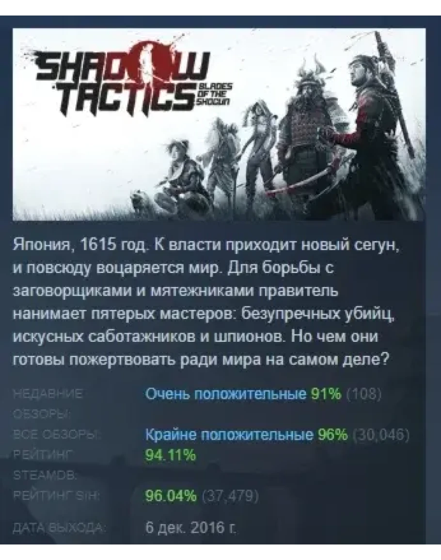 Shadow Tactics: Blades of the Shogun STEAM РОССИЯ