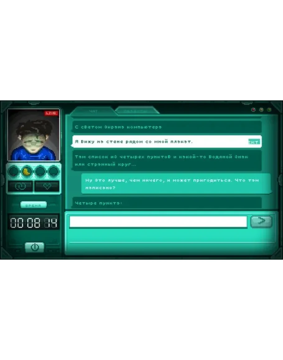 Квинн очнулся в закрытой комнате, где есть только компьютер, подключенный к чату, в котором находитесь вы. Вы стали его единственной надеждой. Ваши быстро принятые решения помогут ему сбежать... или поведут его по дороге, где всё закончится раз и навсегда.
