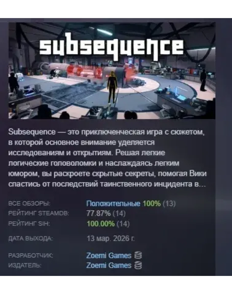 Subsequence АВТОДОСТАВКА STEAM РОССИЯ