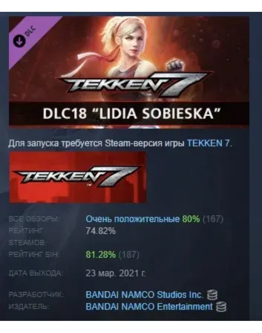 TEKKEN 7 - DLC18: Lidia Sobieska DLC STEAM РОССИЯ