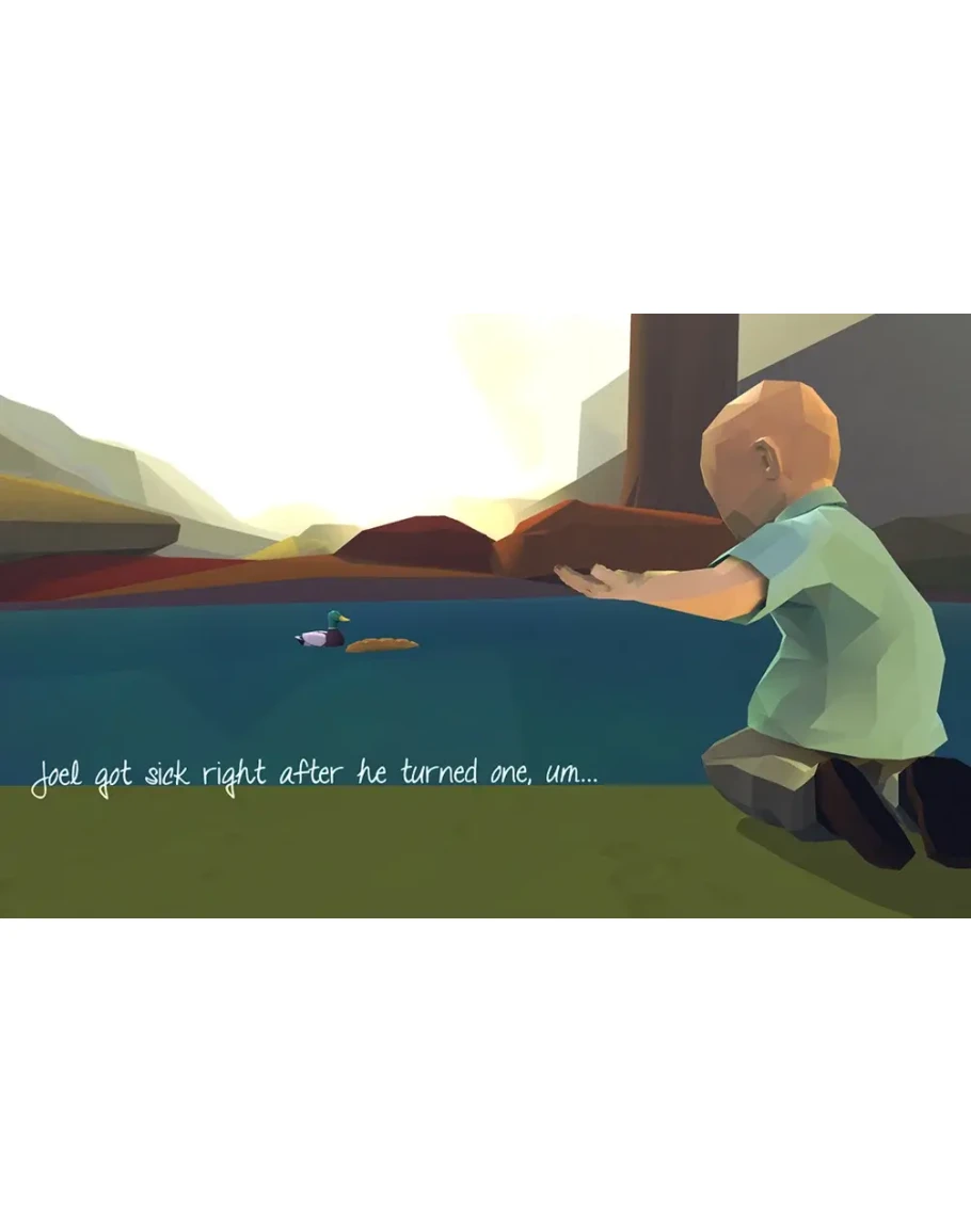 Using a mix of first-person and third-person perspective, and point-and-click interaction, this two-hour narrative experience invites the player to slow down and immerse themselves in a deeply personal memoir featuring audio taken from home videos, spoken word poetry, and themes of faith, hope, despair, helplessness and love, along with in-game tributes to the loved ones of over 200 of our Kickstarter backers.