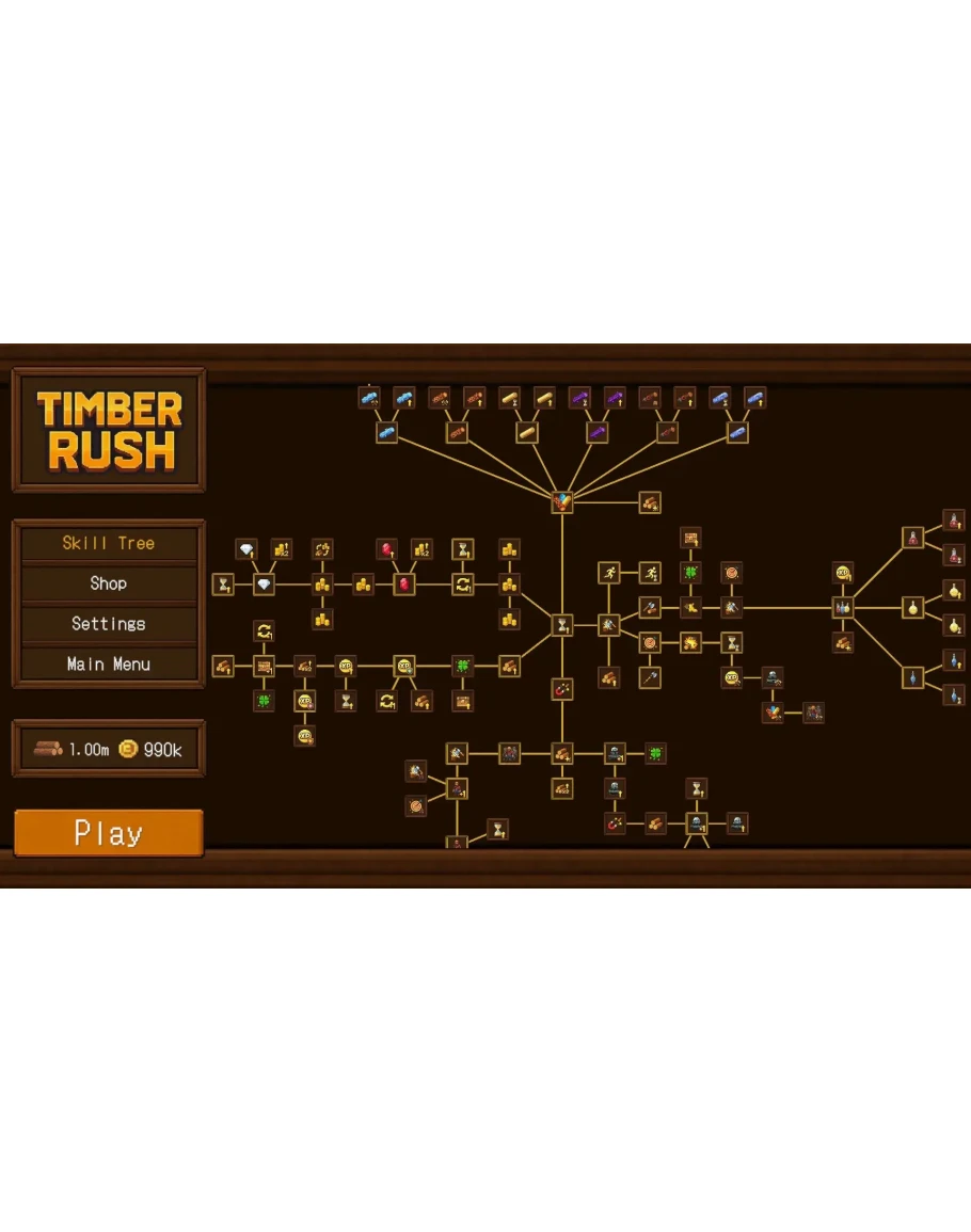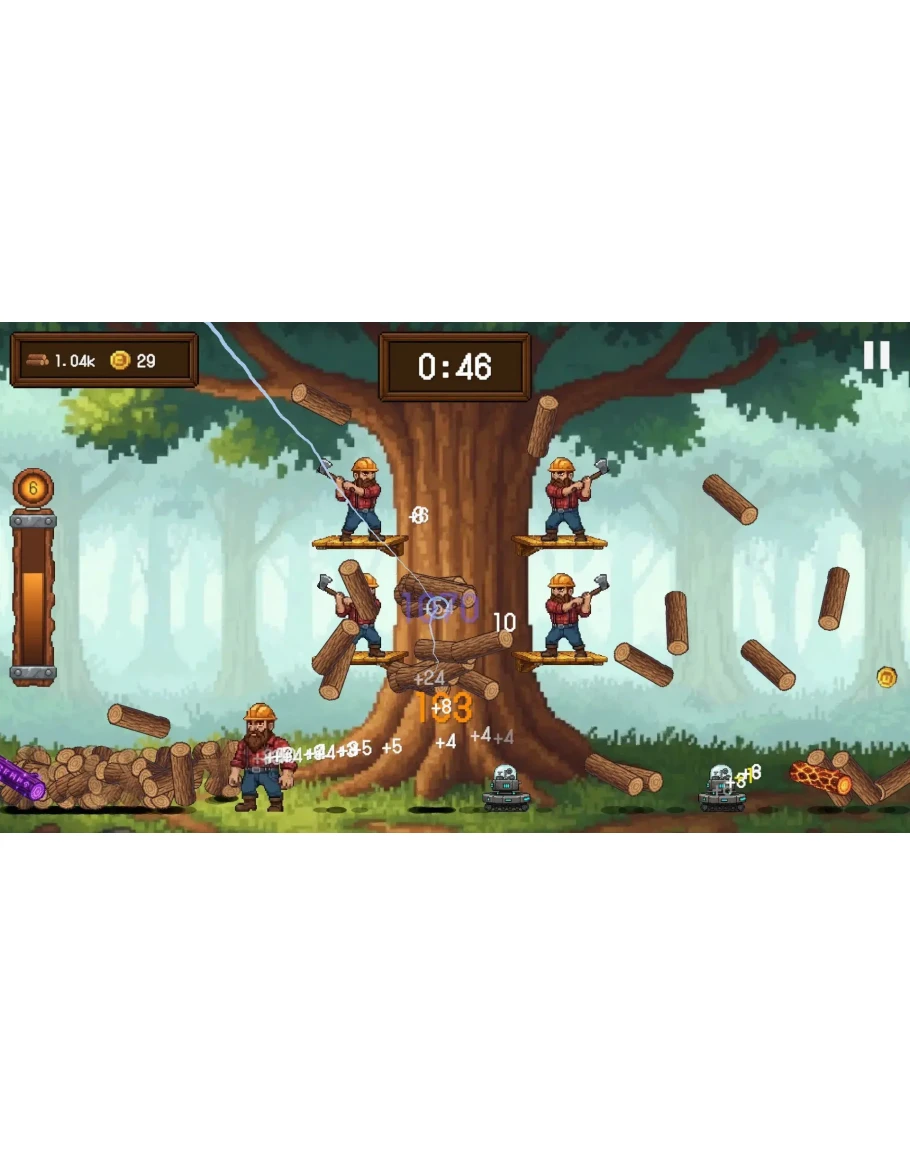 Timber Rush — это динамичный инкрементальный roguelite, где каждый удар превращается в апгрейды, хаос и огромные числа.