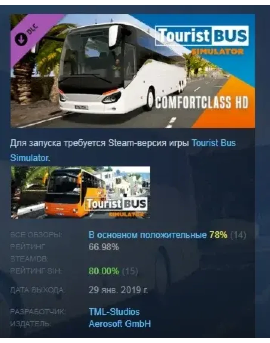 Tourist Bus Simulator Comfort Class HD DLC STEAM РОССИЯ