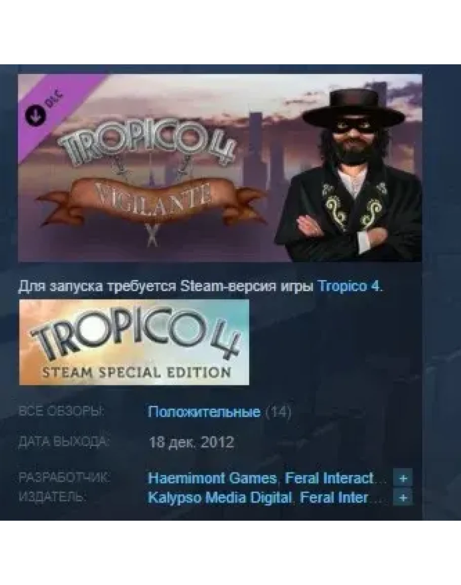 Tropico 4: Vigilante DLC STEAM KEY СТИМ КЛЮЧ ЛИЦЕНЗИЯ