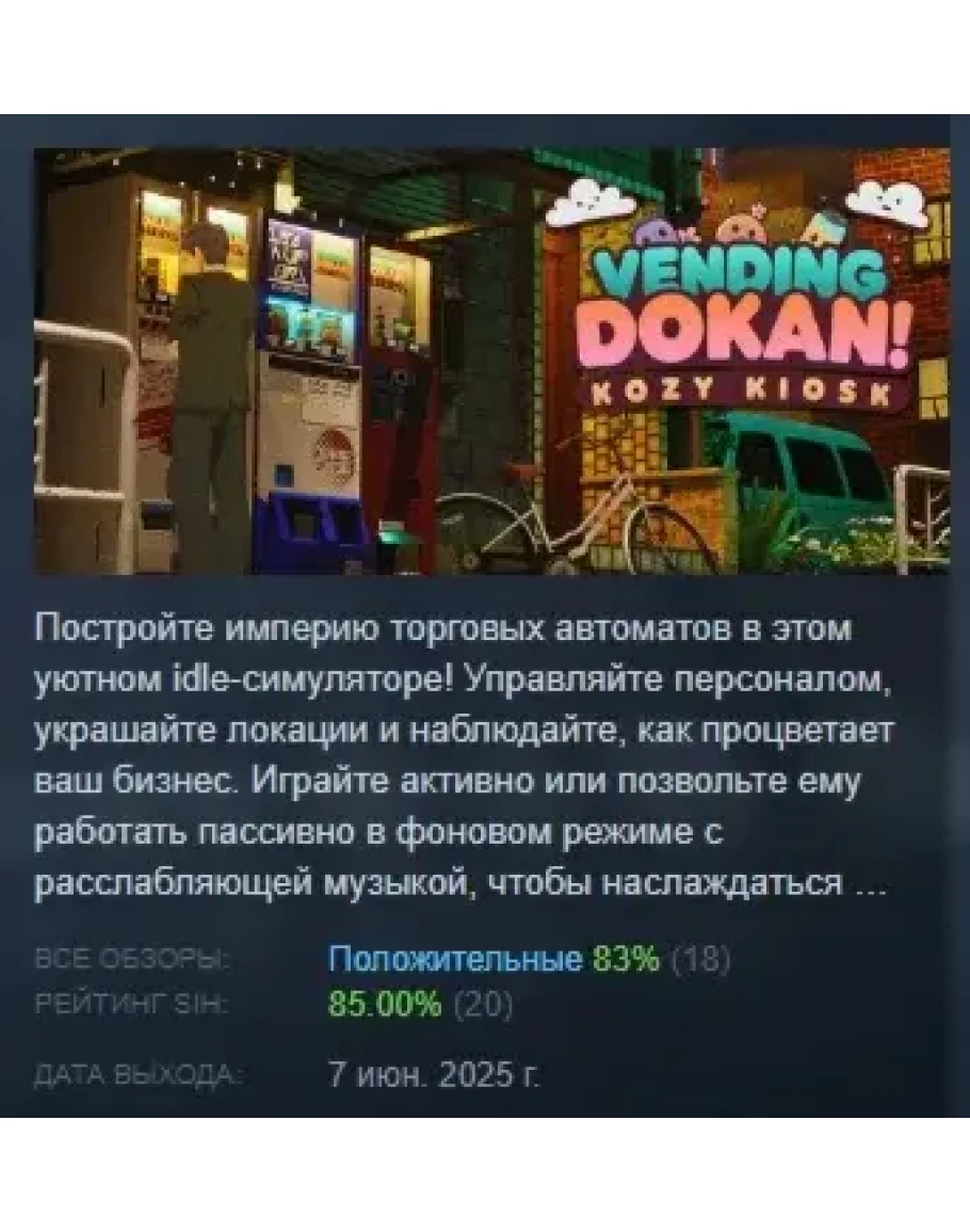 Vending Dokan!: Kozy Kiosk АВТОДОСТАВКА STEAM РОССИЯ