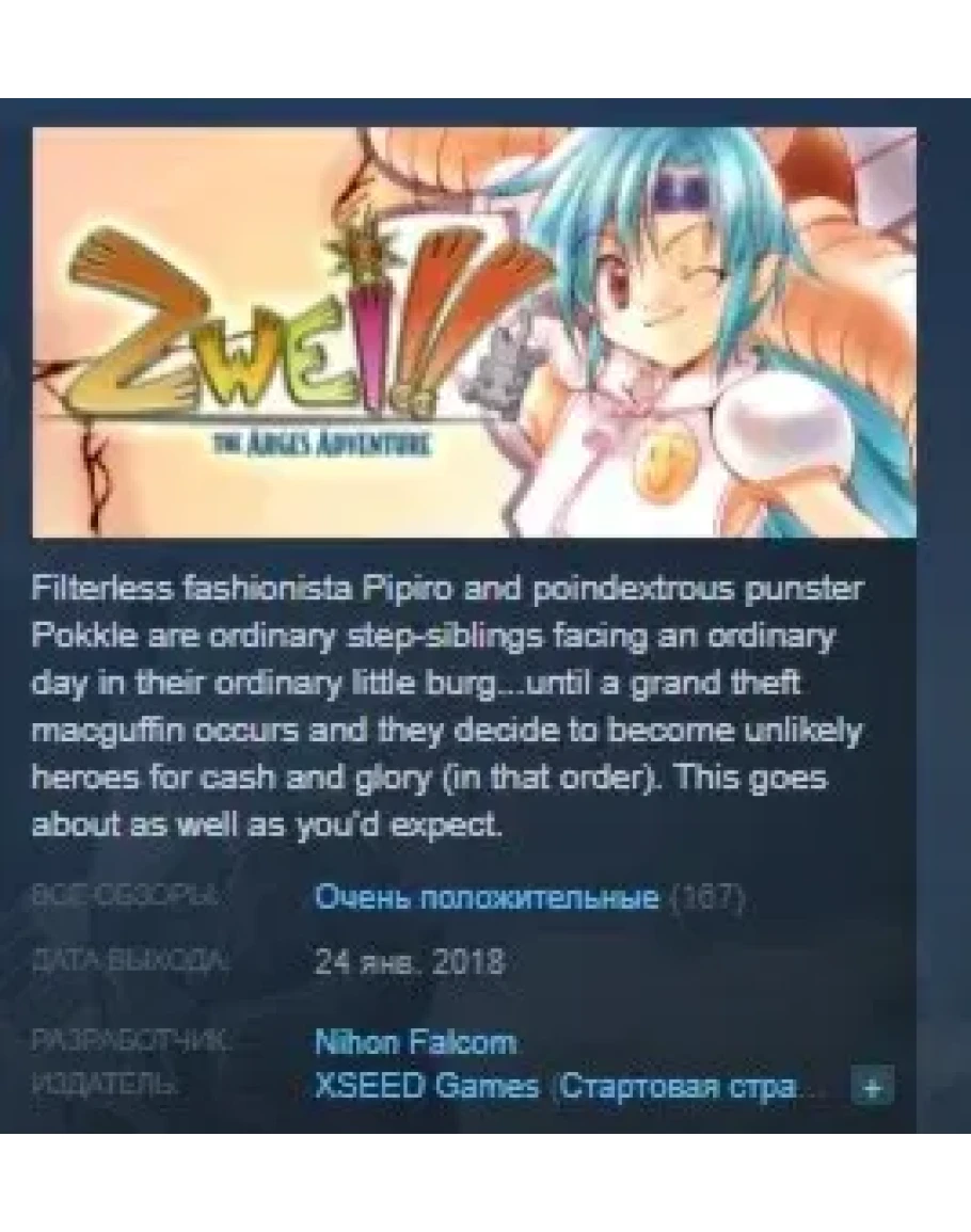 Released in Japan simply as Zwei!!, Zwei: The Arges Adventure is the direct predecessor to the previously released Nihon Falcom action RPG Zwei: The Ilvard Insurrection, from the creators of the popular Ys and The Legend of Heroes franchises.