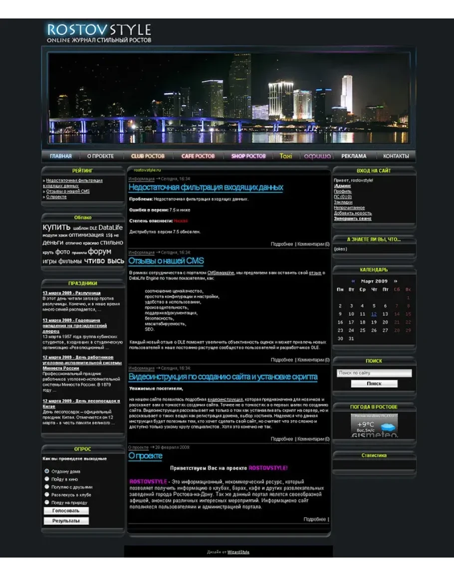 Очень стильный шаблон в темных тонах, подойдет для сайтов клубной тематики и развлечений.