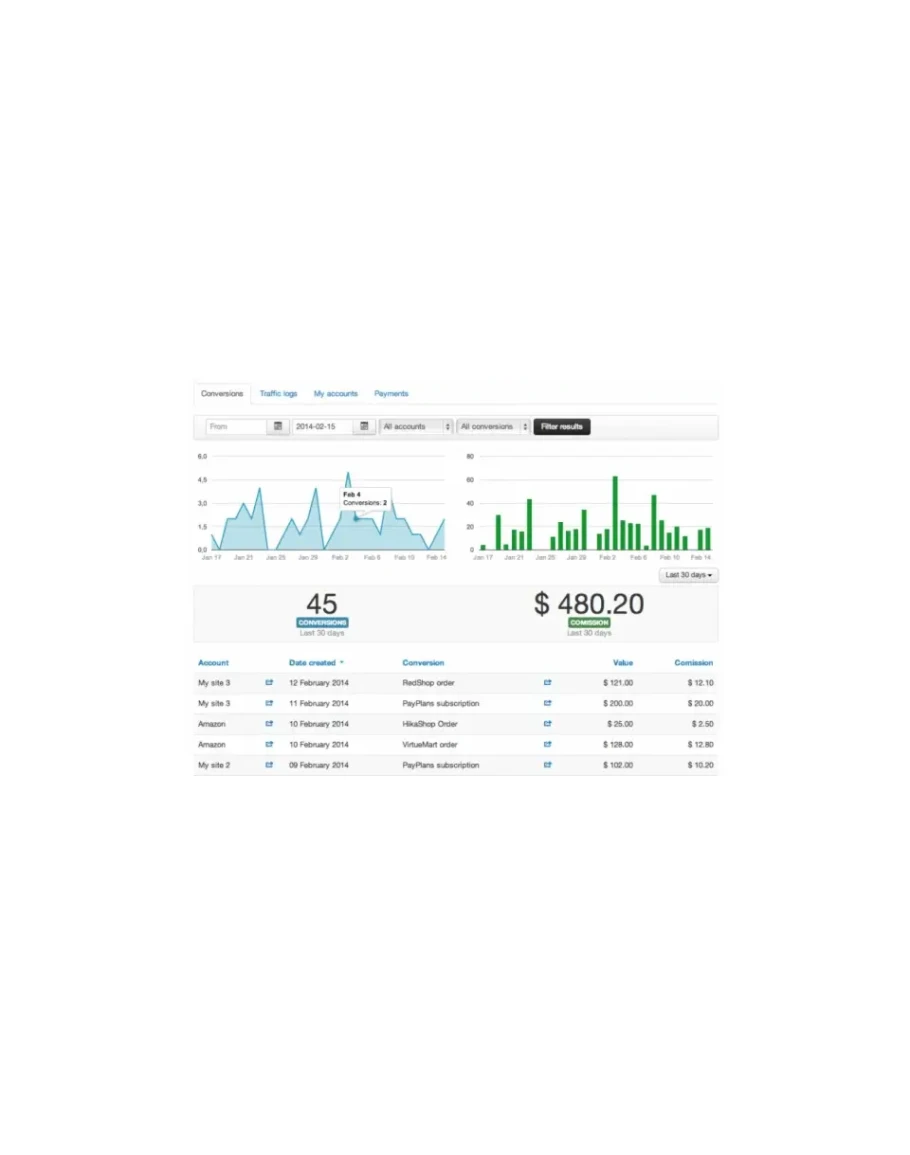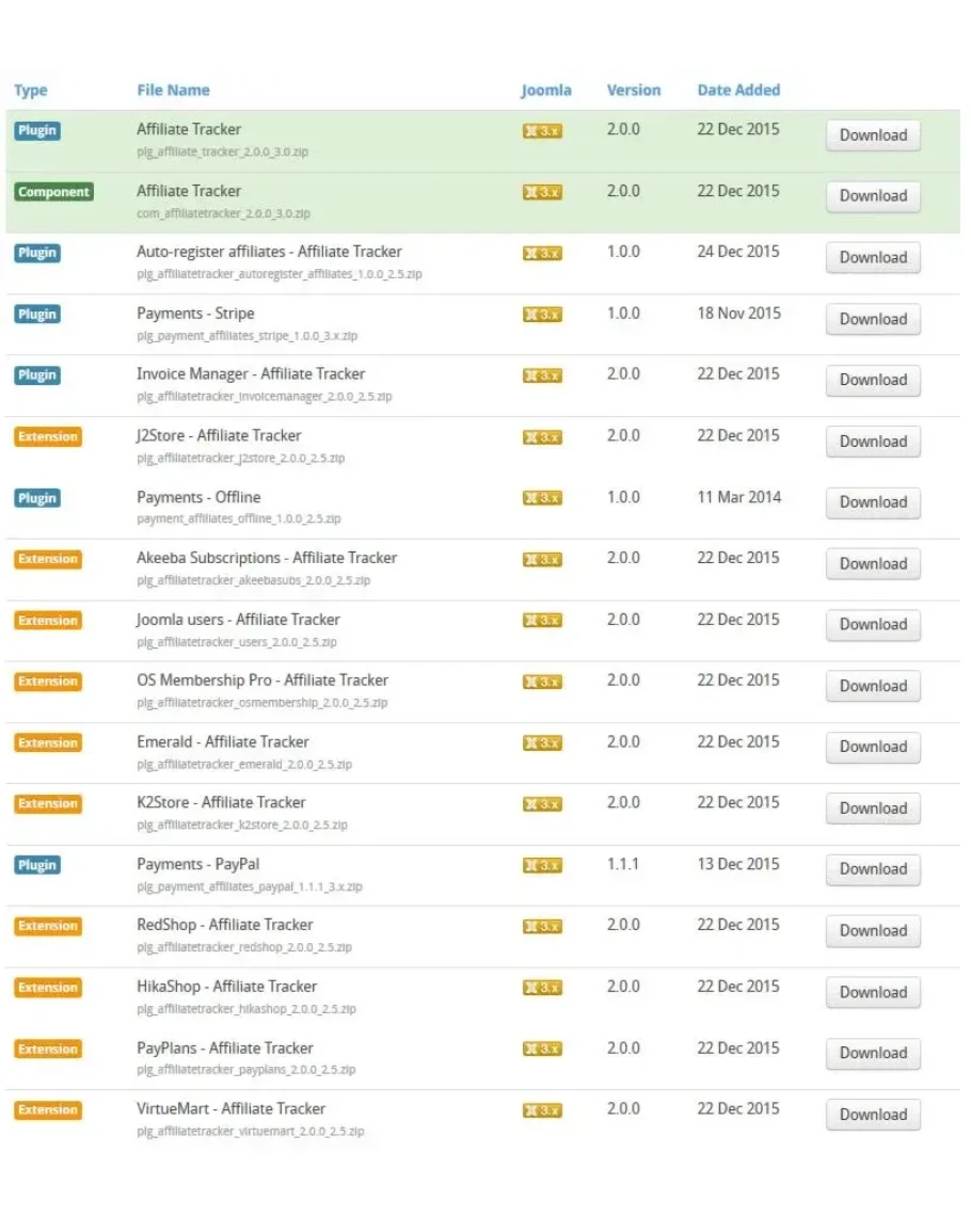 Отличный инструмент для создания Партнерской программы в Joomla! Создайте раздел аффилированного маркетинга на своем сайте, совместимом с такими расширениями VirtueMart, PayPlans, HikaShop, K2Store, Emerald, Os Membership Pro, AkeebaSubs и других подобных инструментов для развертывания онлайн-торговли товарами или услугами, как например тут. Отслеживание продаж, регистрации пользователей, соглашений, ссылок и комиссионных своим партнерам по филиала. Теперь Вы можете отследить какой объем трафика и выгоды Вам принесли Ваши объявления, размещенные на Вашем сайте и монетизировать всех Ваших вновь пришедших посетителей по партнерским ссылкам.