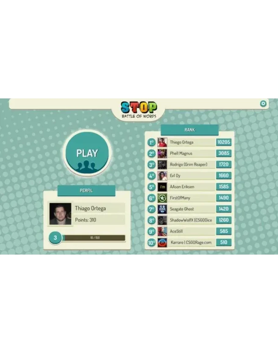 Stop Online - многопользовательская игра, в которой вы соревнуетесь с несколькими игроками на знание слов, пытаясь как можно быстрее и правильнее ответить на выбранные темы. Вы можете соревноваться с игроками на одном из подедрживаемых языков: Английский, Бразильский Португальский, Португальский, Испанский, Французский, Немецкий, Итальянский, Русский, Турецкий, Голландский, Чешский, польский.