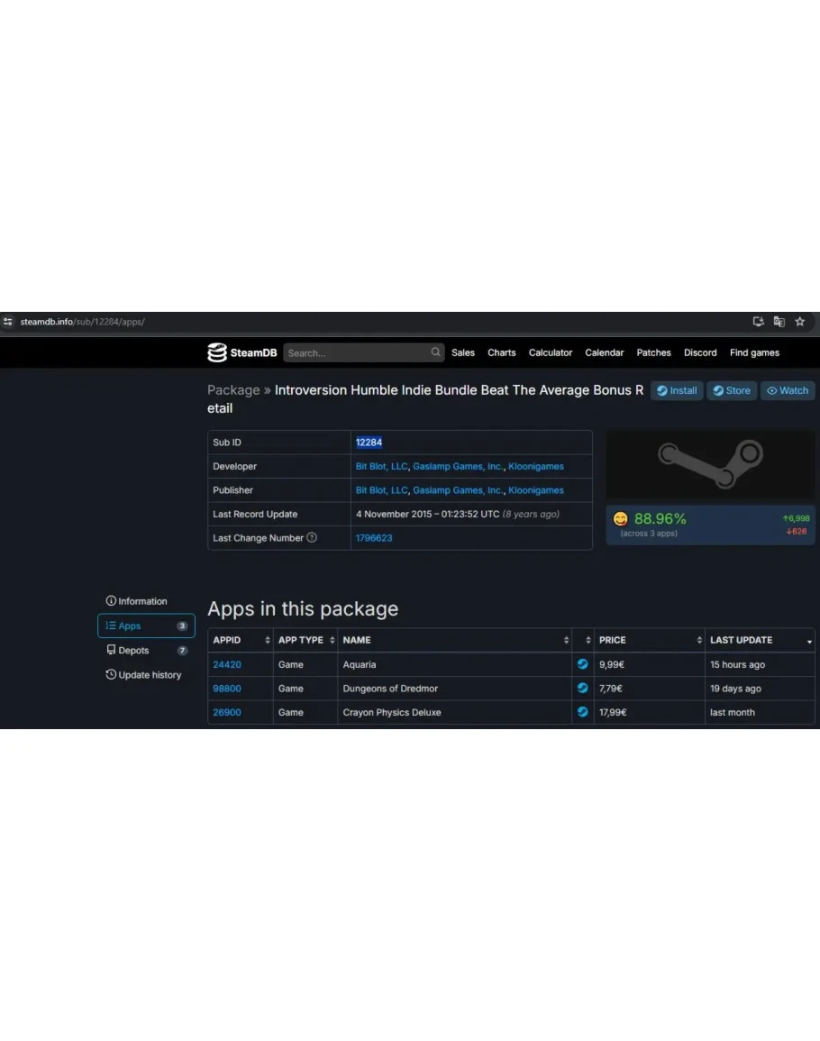 Включенные товары (3): Aquaria, Dungeons of Dredmor, Crayon Physics Deluxe