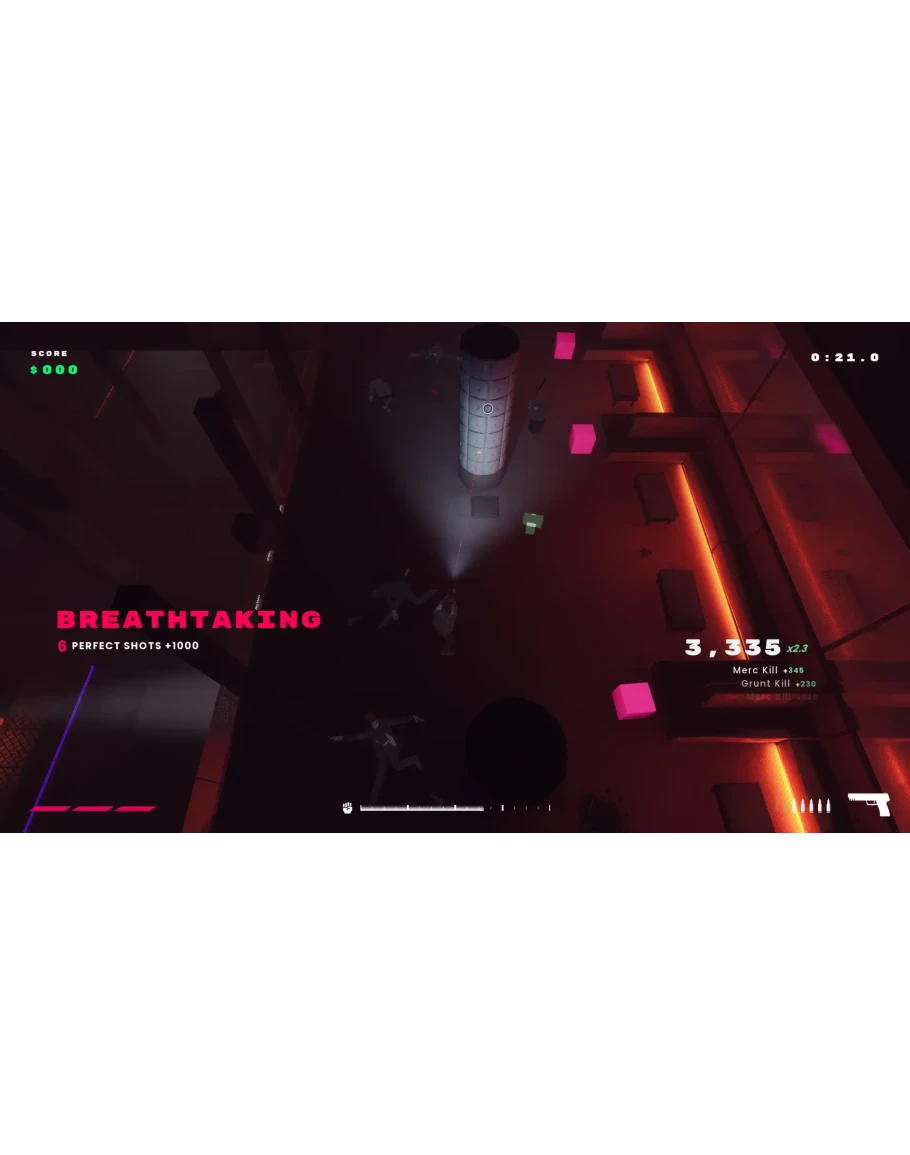 Suit for Hire - захватывающий экшн с видом сверху, сочетающий стратегическую стрельбу с интенсивным боем ближнего боя. Погрузитесь в мир искусно выполненного насилия, проходя адреналином насосные миссии.