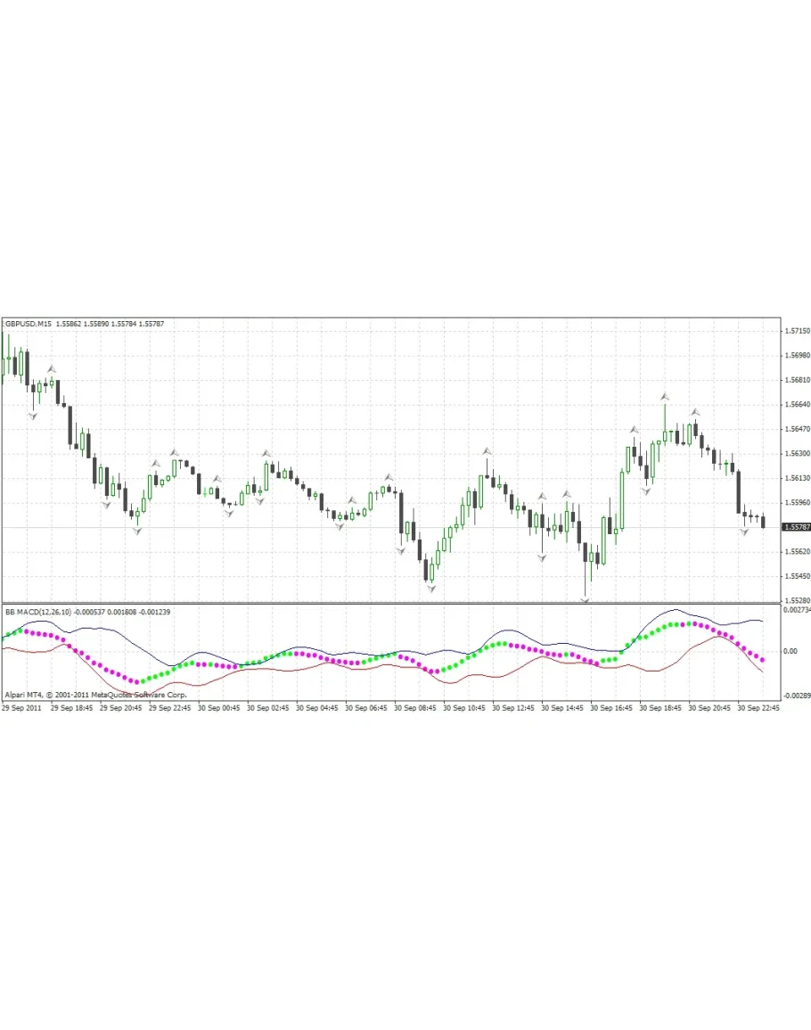 Новый вариант FOREX Индикатора MACD (Moving Average Convergence Divergence) для MetaTrader 4, который помогает определить точки изменения направления тренда, а также силу текущего тренда. Индикатор прорисовывается в отдельном окне графика и состоит из двух линий (синей и красной) и точек, которые могут быть или зелеными или сиреневыми. Изменение цвета точек является хорошим сигналом, тогда как ширина разрыва между линиями отображает силу текущего тренда.