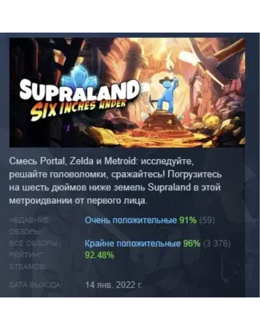 Supraland Six Inches Under АВТОДОСТАВКА STEAM РОССИЯ