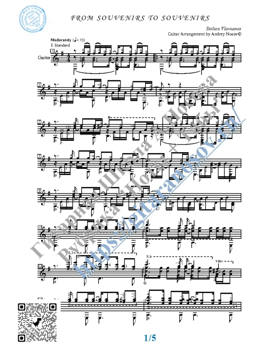 Товар включает в себя ноты с табулатурой и без табулатуры (в одном PDF). Прилагается ссылка на прослушивание / скачивание mp3.
