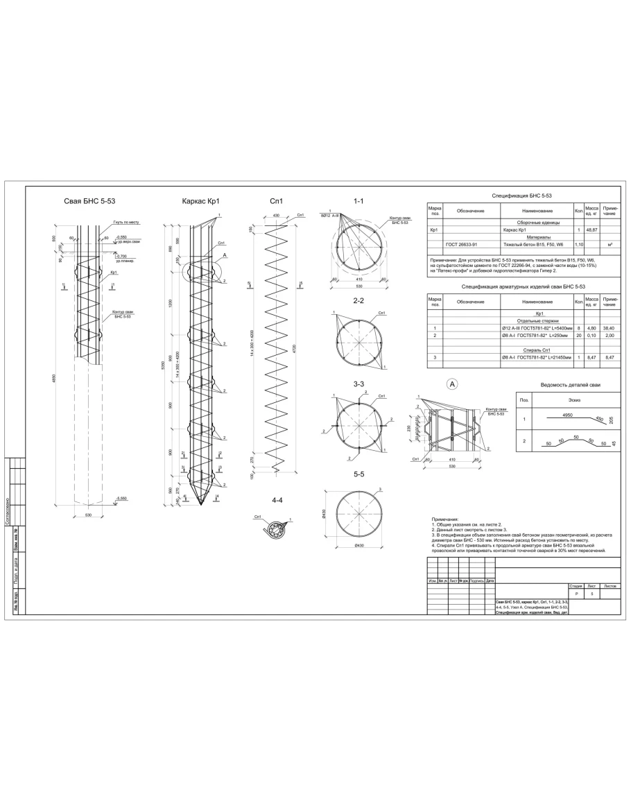 - Фундаменты запроектированы из буронабивных свай диаметром 530 мм и длиной 5,0 м.