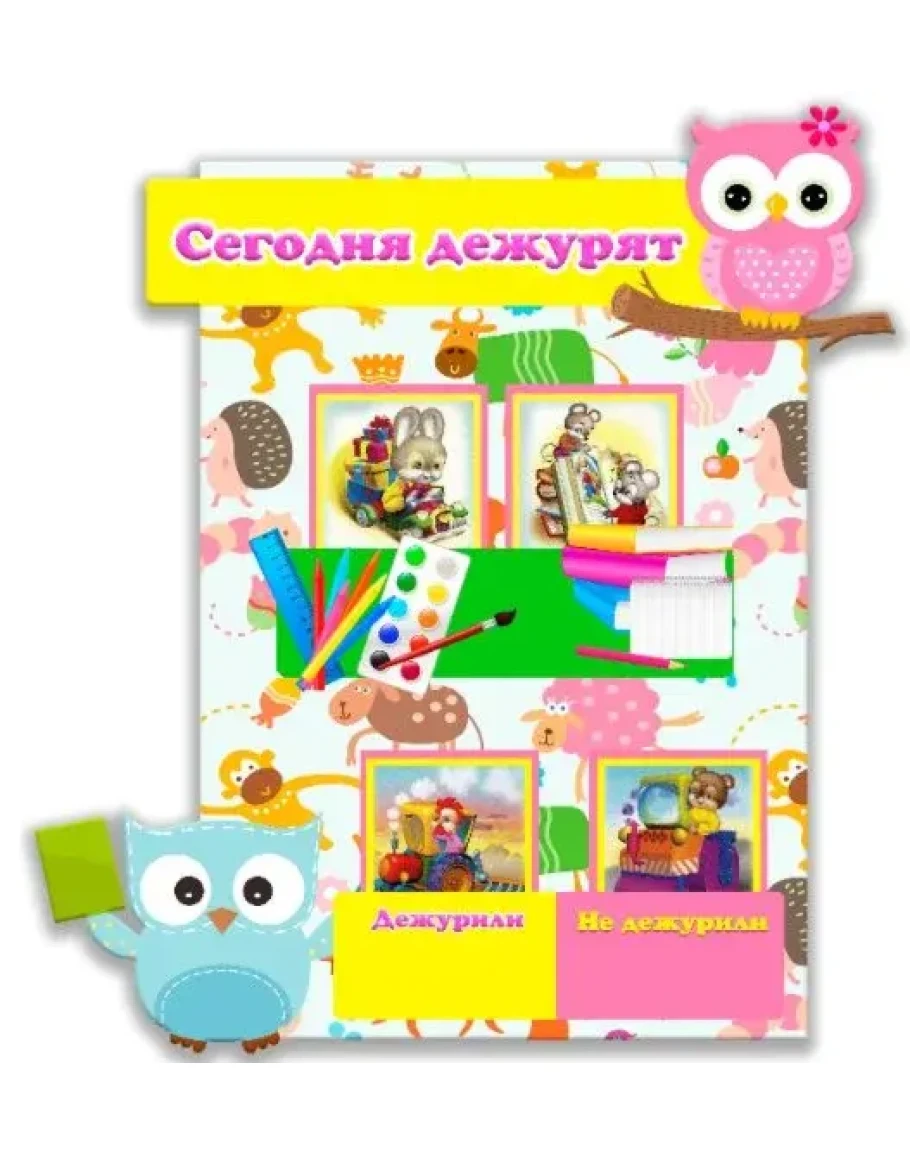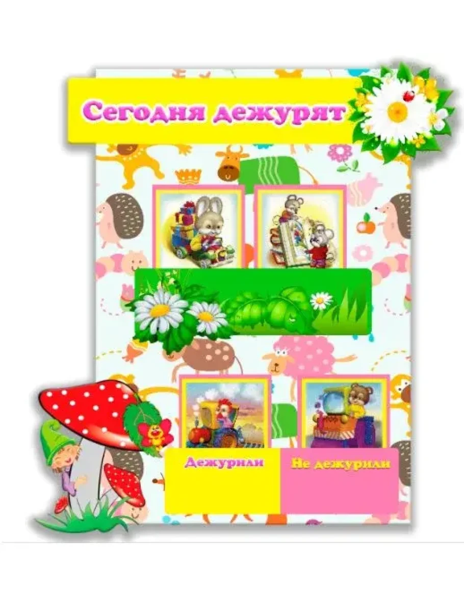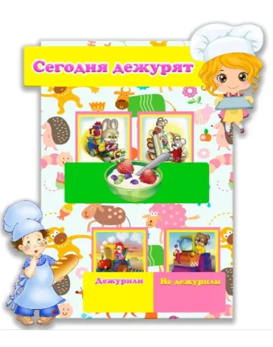 В комплекте 3 позиции (дежурные по занятия,по столовой,по природе),все поставляется в электронном виде