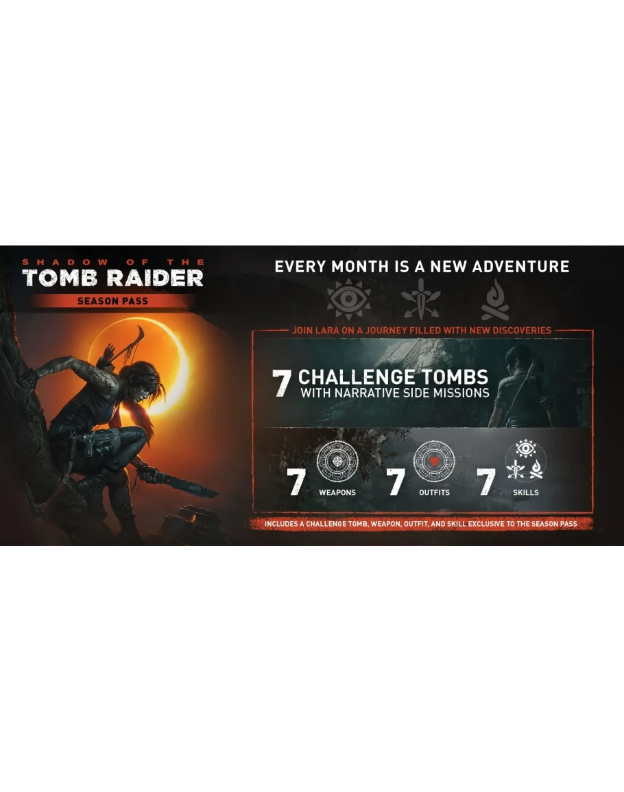 Сезонный абонемент Shadow of the Tomb Raider включает следующие материалы: