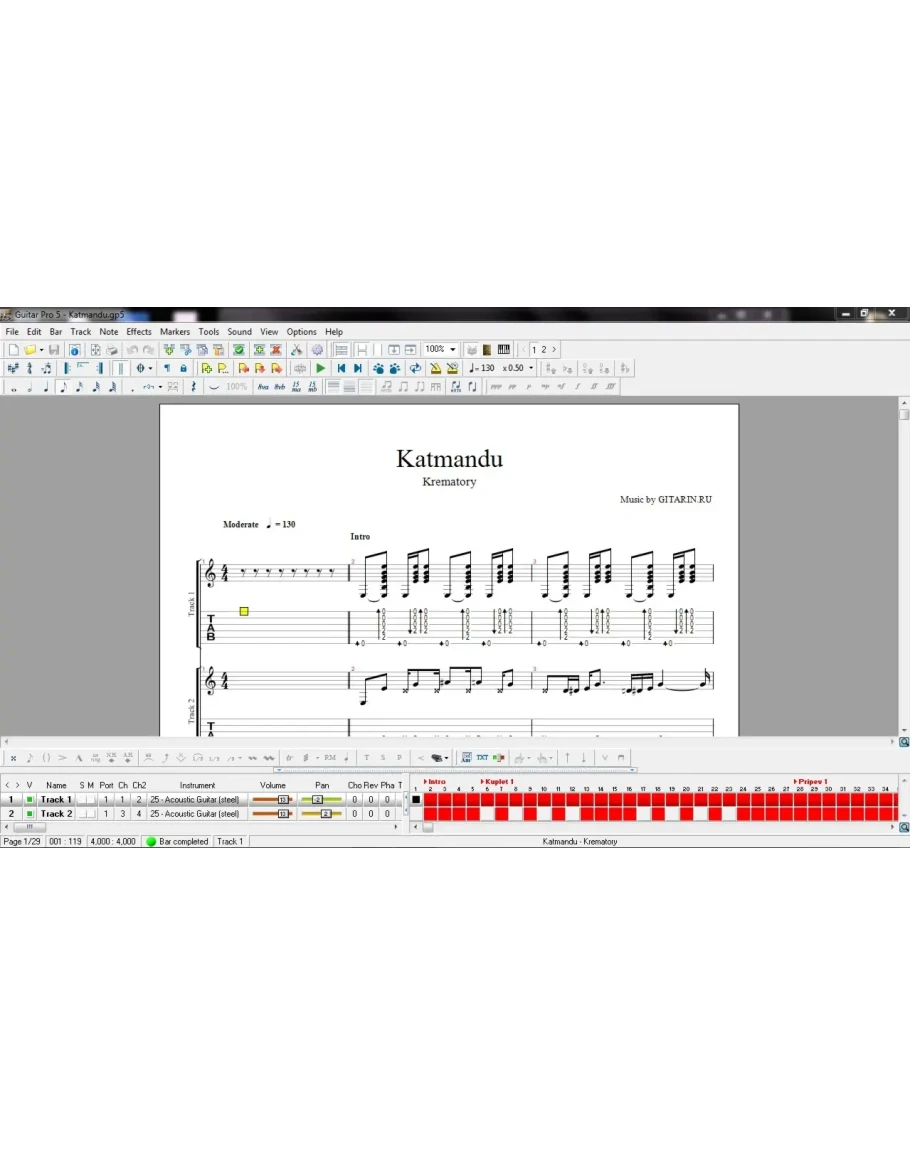 - Табулатура в Guitar Pro (gt5 и gt4);