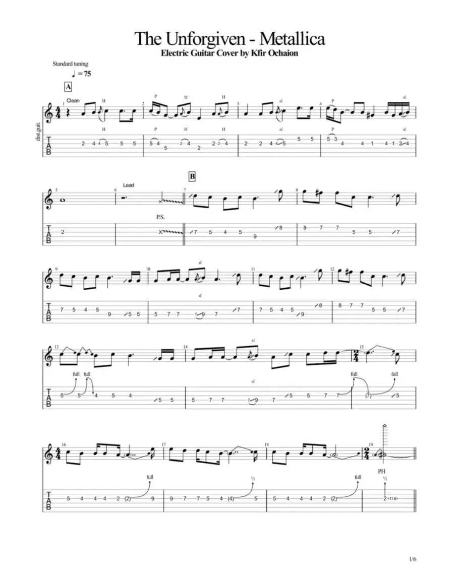 Готовы к новым музыкальным вершинам? Купите табы и ноты прямо сейчас и воплотите "The Unforgiven" в своем исполнении!