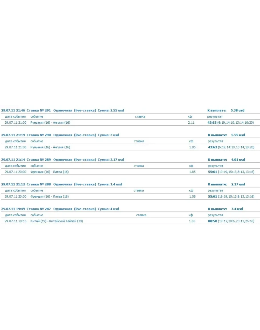 На данный момент у меня из 6 ставок 5 прошло (это средние данные, так как ставок сделано уже много).