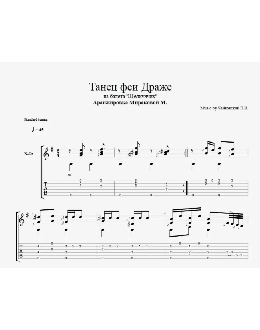 Аранжировка для шестиструнной гитары от Марины Мираковой на композицию "Танец феи Драже" из балета "Щелкунчик". Композитор Пётр Ильич Чайковский.