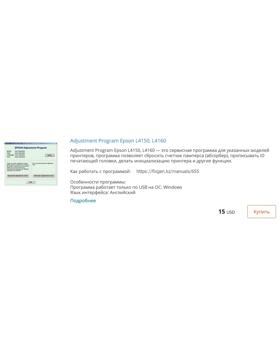 Сброс памперса в Epson L4150, L4160