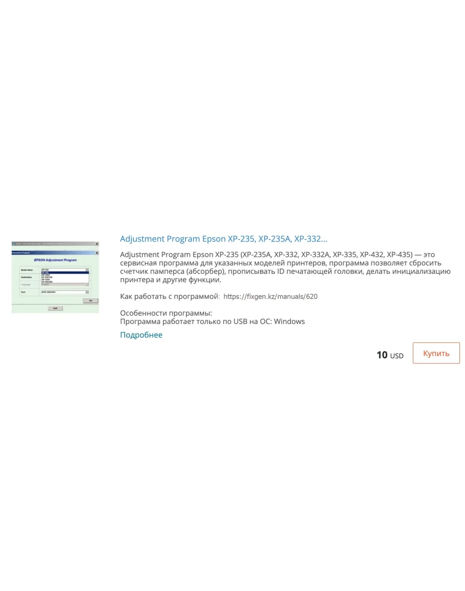 Сброс памперса в Epson XP-235, XP-235A, XP-332, XP-332A, XP-335, XP-432, XP-435